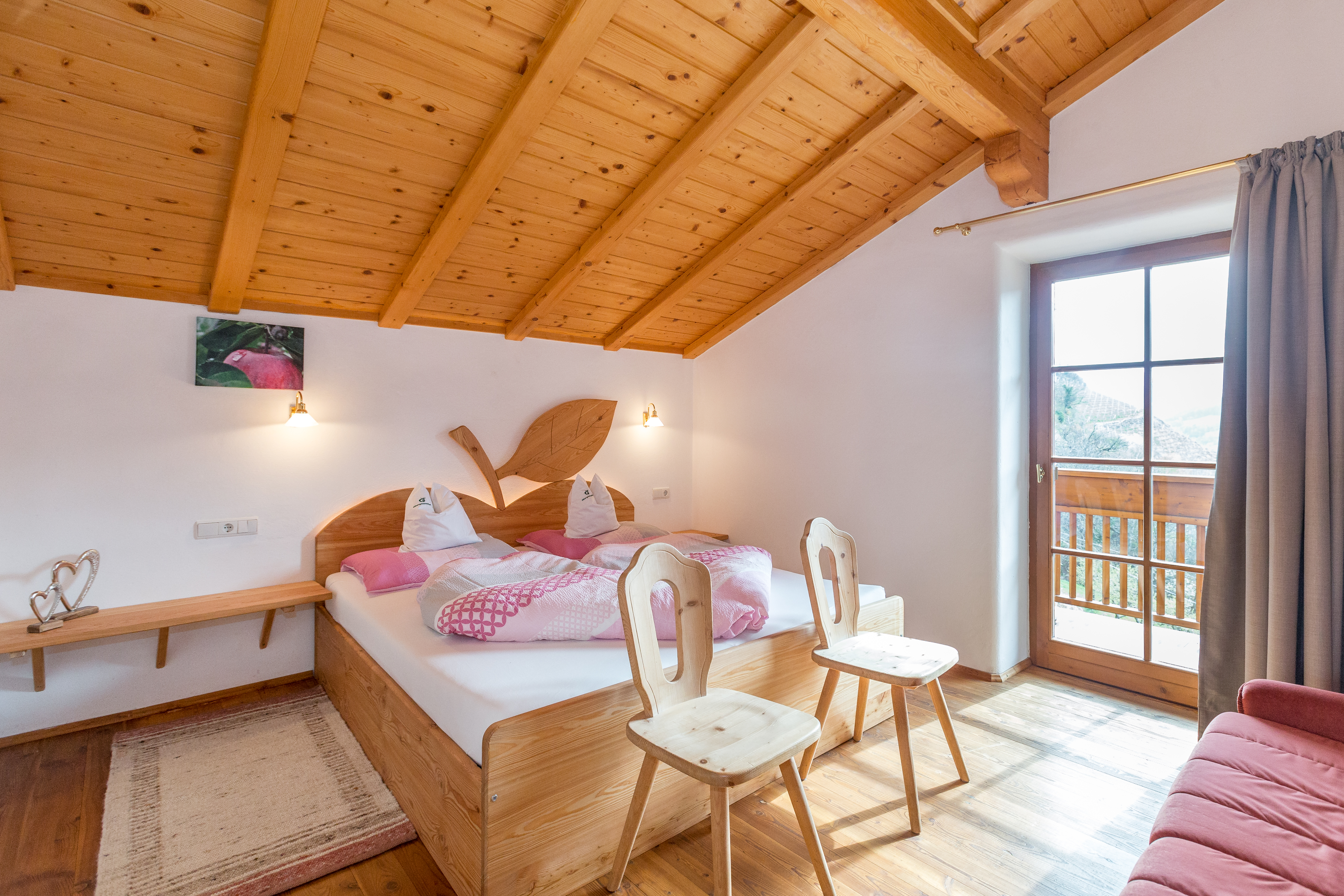 Mettiamo a disposizione dei nostri ospiti due appartamenti di circa 35 m² con balcone soleggiato e vista sulle Dolomiti dell’Alto Adige, una camera singola e una doppia con bagno privato. Inoltre, il nostro piccolo parco giochi dotato di scivolo, sabbiera e molto altro garantisce grande divertimento anche per i più piccini.