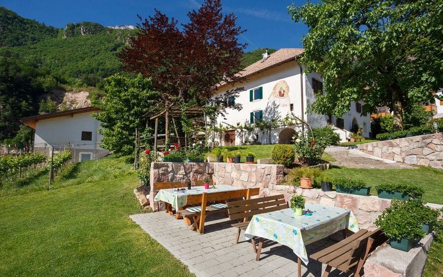Hell, lichtdurchflutet und mit fantastischem Ausblick über Obstgärten bis hin zum Dolomitenmassiv mit dem Rosengarten.