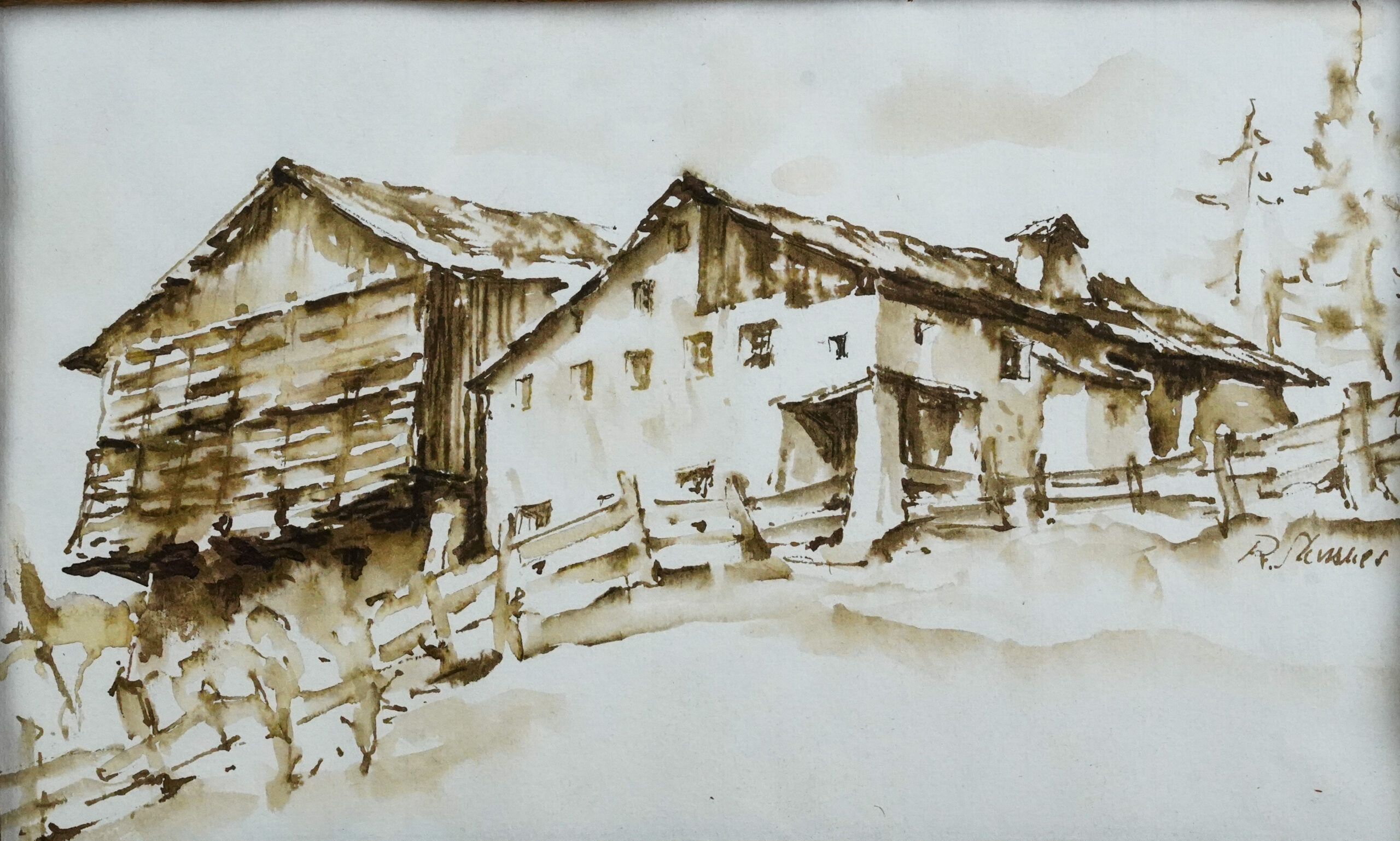 Angrenzend zur Stüa dal Tê können Sie nämlich das umfassende künstlerische Schaffen des Besitzers Raimond Mussner bestaunen. Dabei stehen die Bilder der „viles ladines“, in Aquarell- und Mischtechnik, im Mittelpunkt: Die Dauerausstellung zeigt Interpretationen ladinischer Architektur der vergangenen Jahrhunderte mit den berühmten „masi“, den Einhöfen, die bis heute bewohnt und liebevoll instandgehalten werden. Die im Atelier gezeigten Exponate sind also nicht nur Kunstwerke, sondern Zeugnisse ländlicher Wohnkultur im Gadertal und in Gröden.