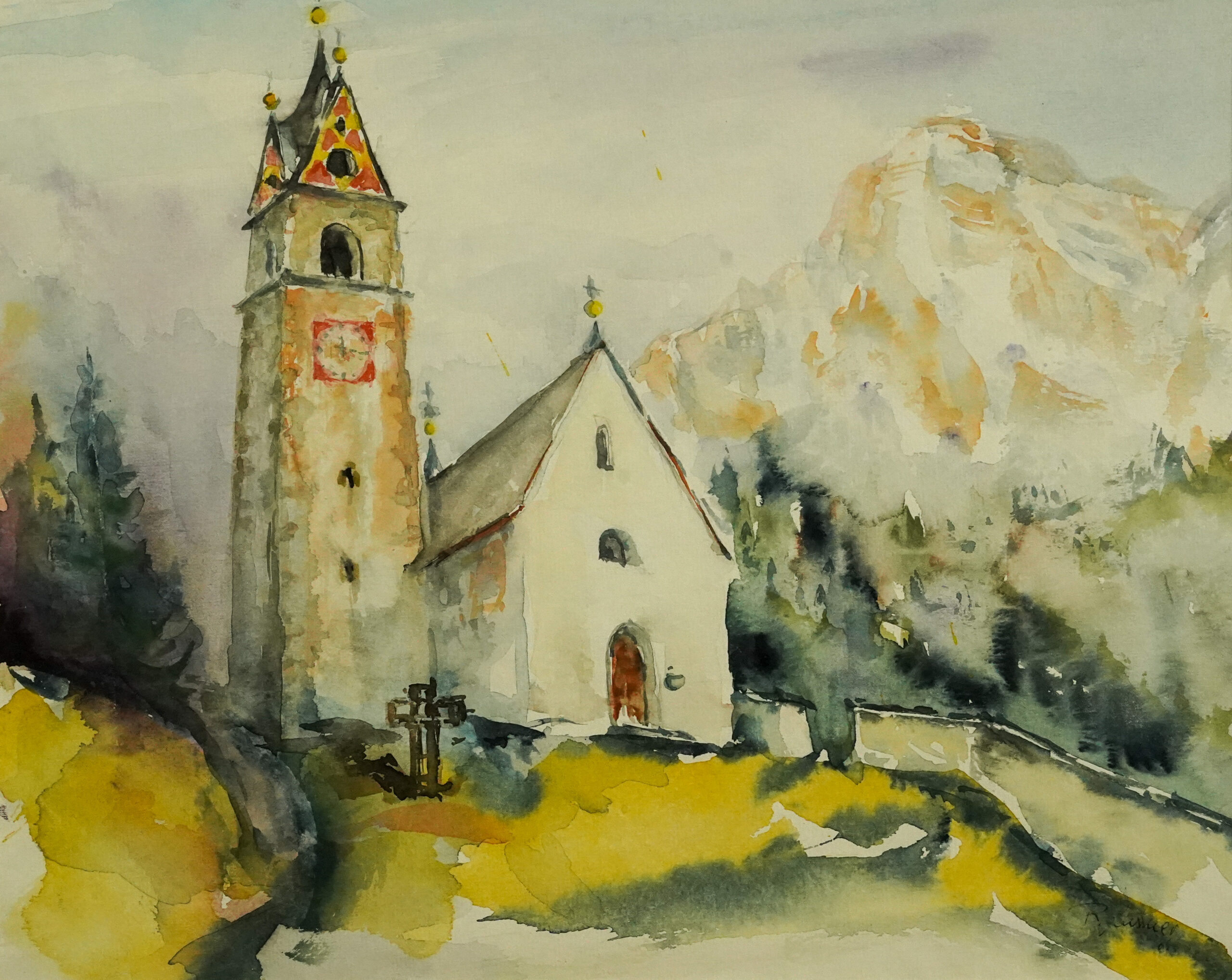 Mit seiner Leidenschaft für die Aquarellmalerei bringt Mussner seine große Liebe zu Ladinien in der Auswahl lokaler Naturmotive, vor allem der sogenannten „viles ladines“, zum Ausdruck.