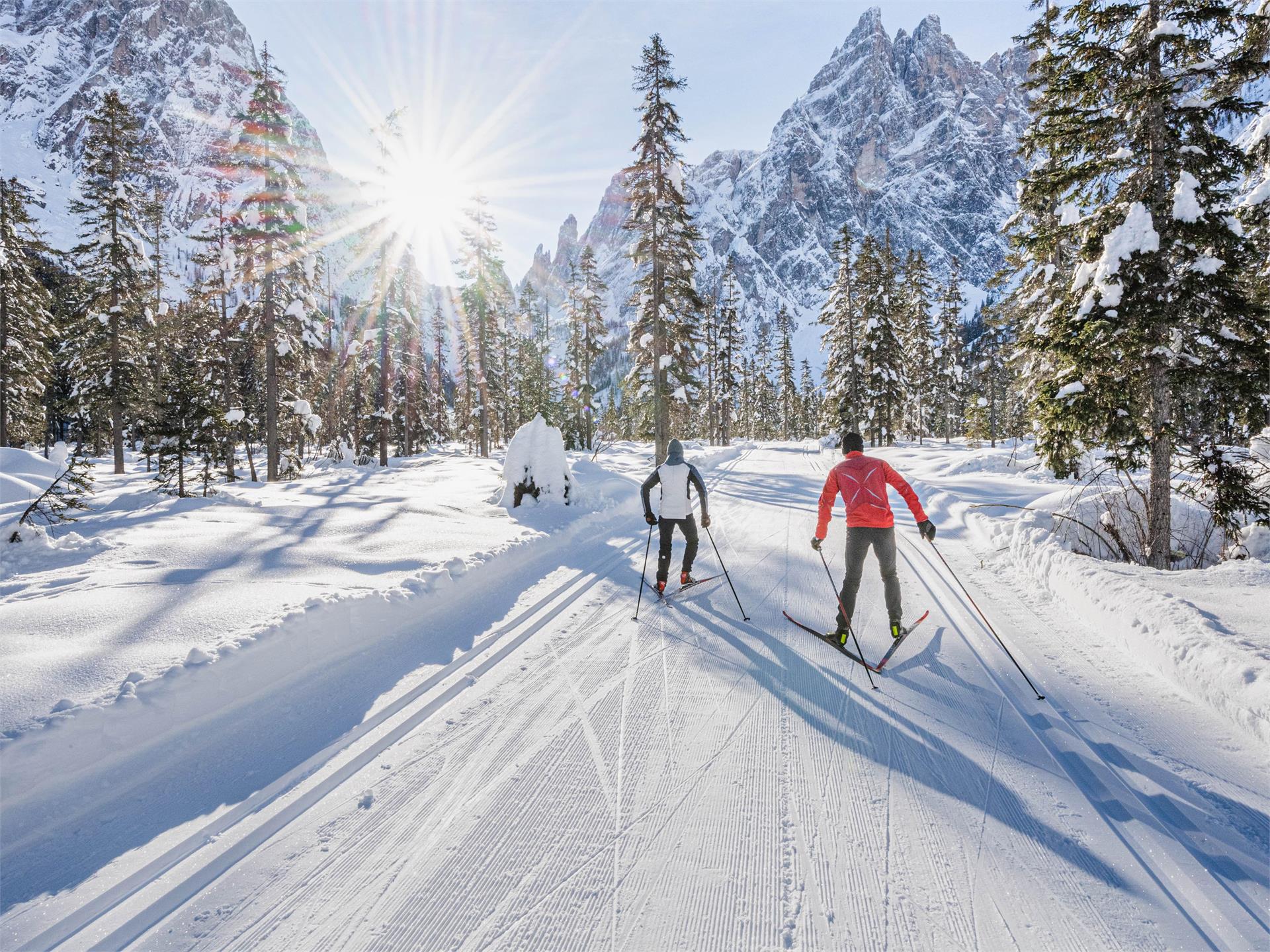 Wunderschöne Rundloipe im wildromantischen Fischleintal mit Blick auf die Sextner Sonnenuhr.
