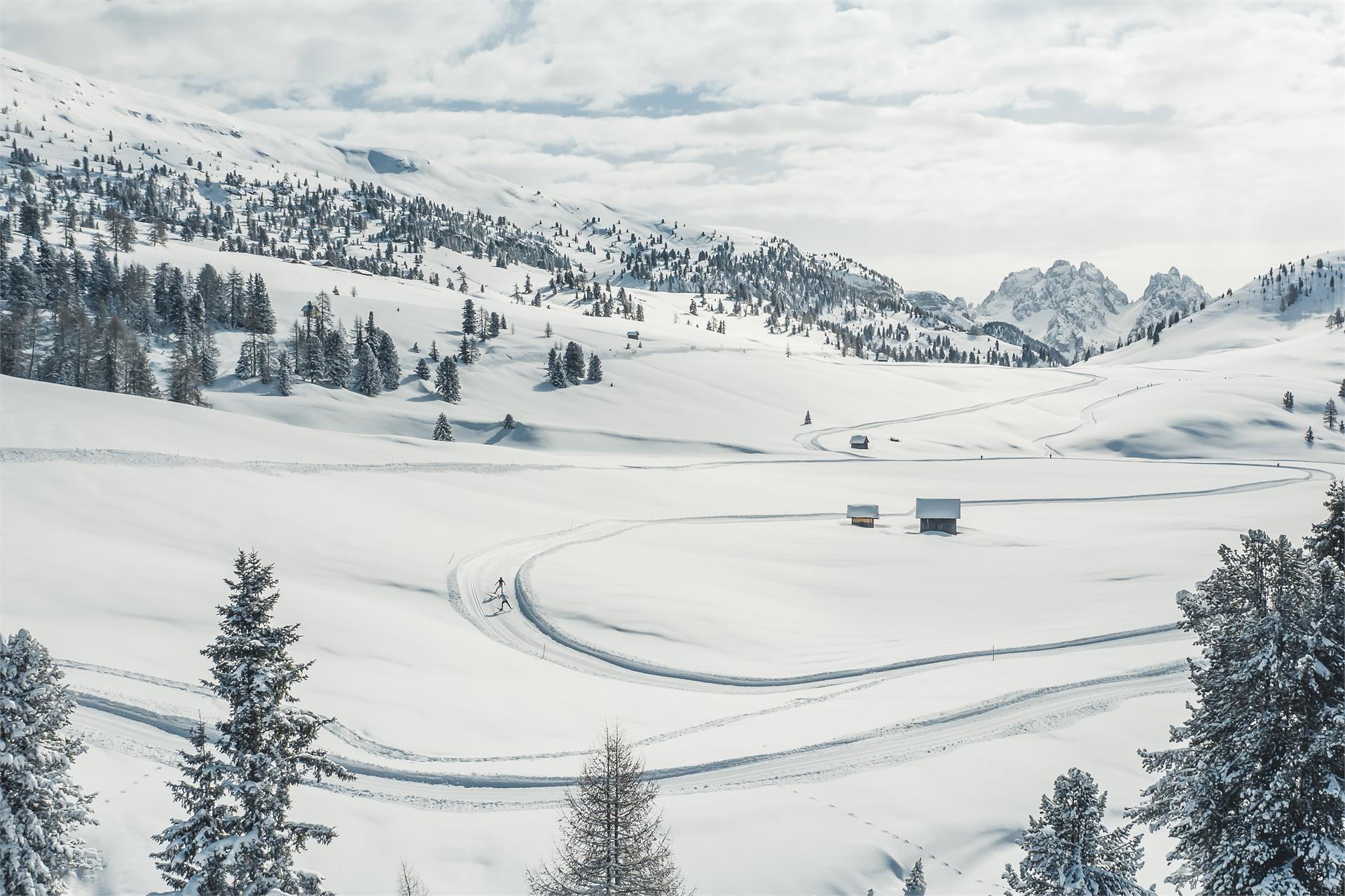 Auf dem 2000 m hohem Hochplateau Plätzwiese mitten im Naturpark, wo sich schon mancher Langlaufstar auf olympisches Gold vorbereitet hat, bietet sich dir eine ausgezeichnete Schneelage und wunderschöne Stunden auf den Langlaufskiern. Dieser einmalige Rundkurs ist auch für Anfänger und Genießer zu empfehlen. Genieße die Stille und Natur kombiniert mit einem umwerfenden Blick auf einige berühmte Gipfel der Dolomiten (Hohe Gaisl, Monte Cristallo und Tofane)!