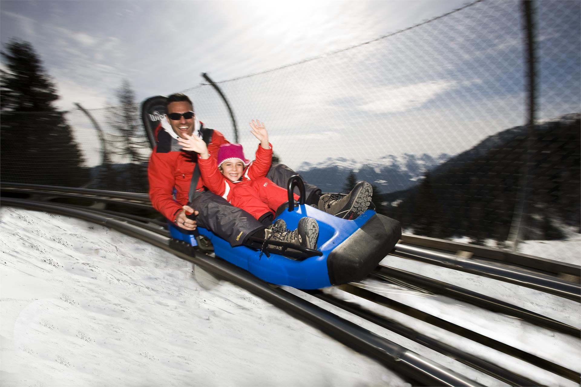 Sommer und Winter erleben Sie hier die Emotion von Steilfahrten und atemberaubenden Kurven im Wald des Latemars.