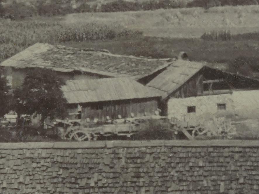 Dieser ehemalige Mühle- Sägebetrieb mit dazugehörigem Grundbesitz von ca. 1,5 ha begegnet uns urkundlich am 11. Juli 1421. Unter den Lehengütern des Bertold von Tschengls die Herzog Friedrich IV dem Wilhelm und den Gebrüdern Heinrich und Wilhelm von Lichtenstain verleiht, wird neben der halben Feste zu Tschengls, der Turm zu Tschars, drei Äcker bei der Feste, die Bergmähder der Höfe Vorburg und Hinterburg, die Frischach zu Prad, das Tal Sulden mit genannten Rechten, auch die Säge zu Prad genannt. In der Folge wird das feudale Lehen des Sägebetriebes von Prad bei der Belehnung durch Erzherzog Sigmund von Österreich-Tirol an Heinrich von Liechtenstein und seinen Vettern Georg, Bartholomeus und Balthasar von Liechtenstein am 1. März 1450 als Erbe des Sigmund des Tschengelser, erneut erwähnt. Die wohl Prads älteste Säge, sicherlich aus dem 14. Jahrhundert, war stets damit beschäftigt das Triftholz aus den grundherrschaftlichen Wäldern jener von Tschengls bzw. Lichtenstainer aus dem Suldental, zweckbedingt zu verarbeiten. Um 1694, als außer dem Säge- auch von einem Mühlenbetrieb die Rede ist, besitzt laut Steuerkataster Thomas Stieger dieses mit einem Haus, Sag, Mill, Stampf und Wasserfuer ausgestattete Anwesen. Am 16. Februar 1724 erwirbt Peter Veith – Müllermeister die Mühle von Luzia Stieger und wird damit Leheninhaber des grundherrschaftlichen Besitzes von Franz Carl von Lichtenstain Freiherr zu Castlkorn und Khrumpach, Herrns zu Schenna Karnneidt und Tschenglsburg. Zurzeit S.M. Kaiserin Maria Theresia hat Anton Theiner die „Muesmihl mit ein gang, Stampf und sag am Lavadbach“ als hochgräflich Fuxisches Grundgut in Lehen. Damals bestand dieses Anwesen aus : ain Behausung, Stadl, Stallung, ain Stuben, ain Khuchl, zwo Khämmer, an dieser Behausung ist ain mueßmihl gerechtikheit, mit ainen Gang, auch ain stampf und ain sag, zu unterist des Dorfs Prad gelegen, die sagmihl genanth.