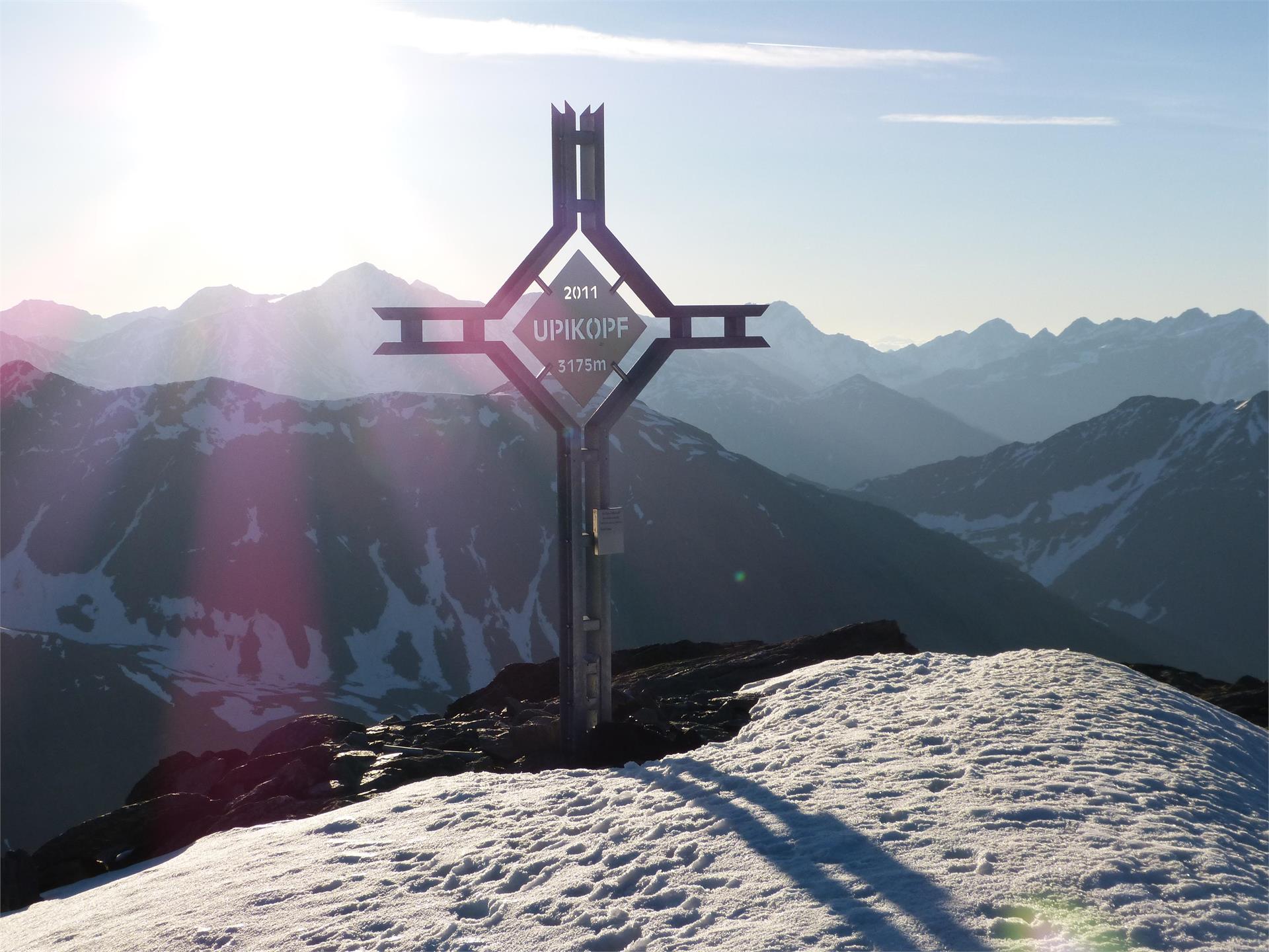 Startpunkt der Skitour ist der Matscher Talschluss. Von den Glieshöfen (1.810 m) dem Almweg folgend weiter bis zur Upiaalm (2.225 m). Von der Alm leicht ansteigend im Linksbogen bis an der Felsabriegelung, dann über sanfte Hänge bis kurz oberhalb von den “Lacken” (Upiasee 2.552 m) nach links in Richtung S-Hang zwischen Upiakopf und Hochalt weiter. Der anspruchsvollste Teil der Tour, der steile Hang, verlangt Vorsicht und Kraft bis man zum Gipfel gelangt. Schöner Rundblick und rasante Abfahrt.