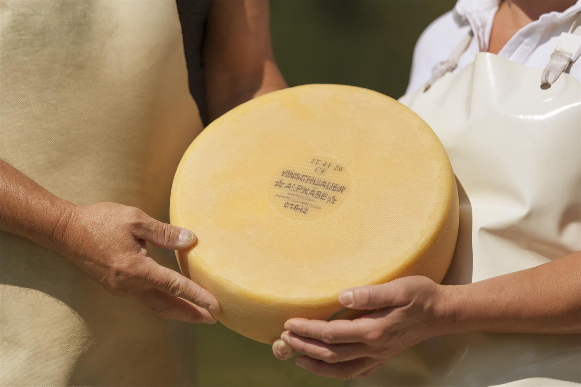 Die Obervinschger Almen sind bekannt für den exzellenten Almkäse. Er wird wie einst in Handarbeit geschöpft und verarbeitet. Die Milch stammt ausschließlich von den Kühen auf der Alm. Darum verkostet und kauft man den Vinschger Almkäse am besten direkt beim Senner auf der Alm.