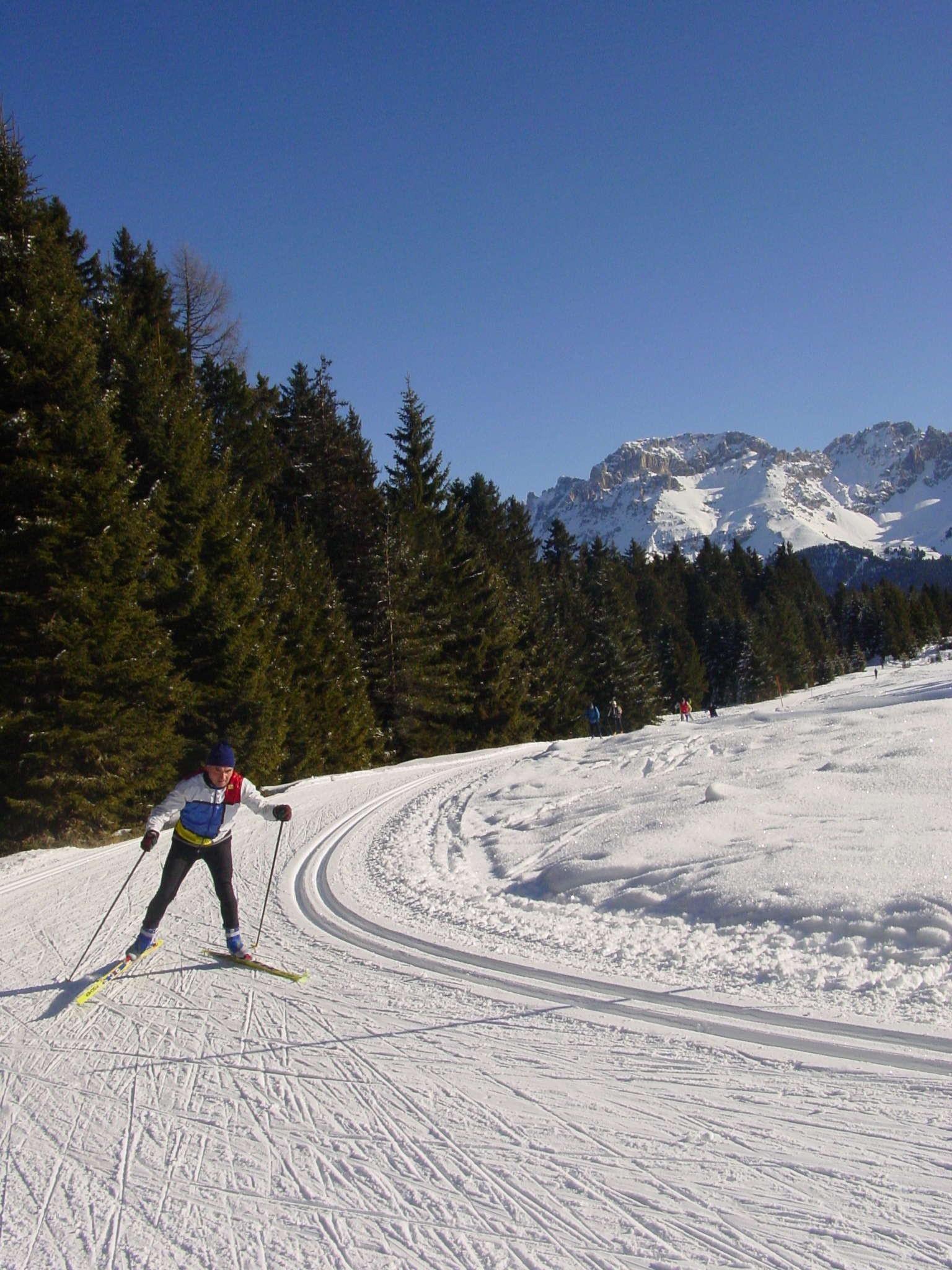 Auf dem  Lavazé – Pass in 1.800 Metern Höhe führen die Loipen durch Wälder und Wiesen bis ins Fiemme-Tal, Italiens Langlaufzentrum. Insgesamt sind es etwa 100 Kilometer bestens präparierte Pisten, auf denen sowohl Anfänger als auch Könner Passendes für sich finden.