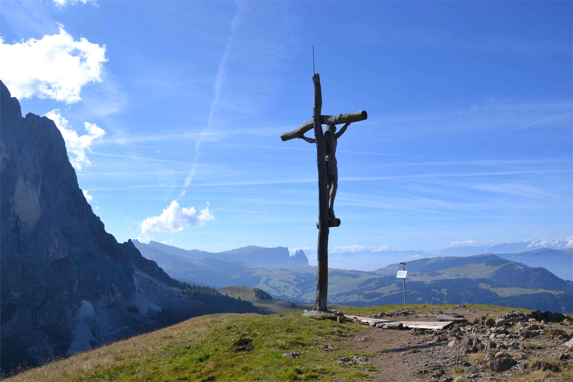 Vom Gipfel aus hat man eine wunderbare Aussicht über das gesamte Grödner Tal mit seinen drei Ortschaften. Dem Besucher eröffnet sich eine atemberaubende Bergkulisse mit Gipfeln und Massiven soweit das Auge reicht: von den nahe gelegenen Geisler-, Cir- und Sellaspitzen sowie dem Schlern oder den etwas weiter entfernten Tofane in Venetien bis hin zur Ortler- und Adamellogruppe im Westen und Gipfeln im benachbarten Österreich.
