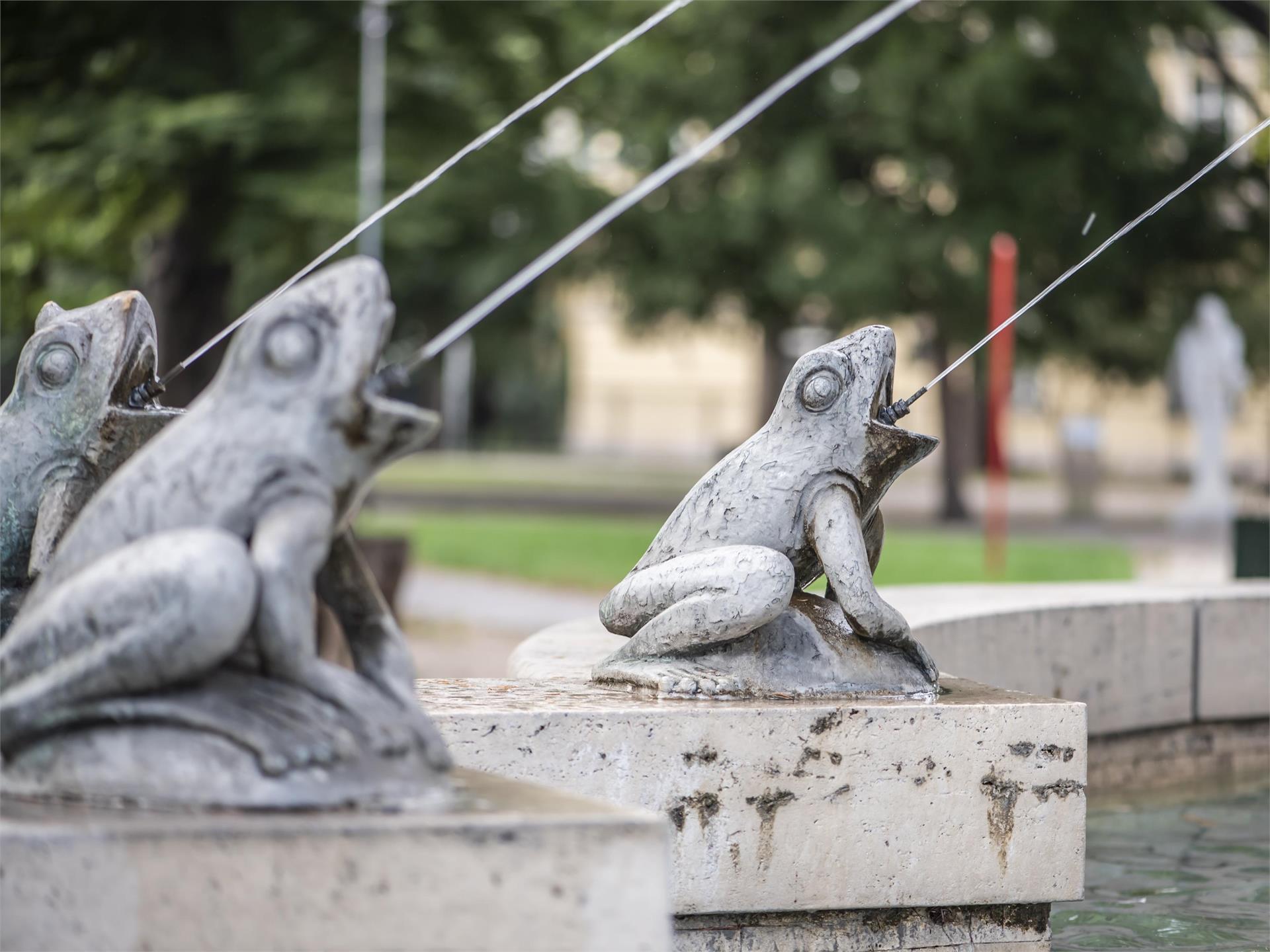 Die Eisenbahnstraße Bozen-Verona wurde gegen Mitte des 19. Jh. fertiggestellt; der Bahnhof geht zurück auf 1928 und ist ein Bauwerk von Angelo Mazzoni mit verschiedenen allegorischen Figuren (Strom, Dampf, Flüsse) von Franz Ehrenhöfer. Der Froschbrunnen gegenüber wurde seinem Original von 1930 nachgebaut, das durch Bombenangriffe im Zweiten Weltkrieg zerstört worden war.