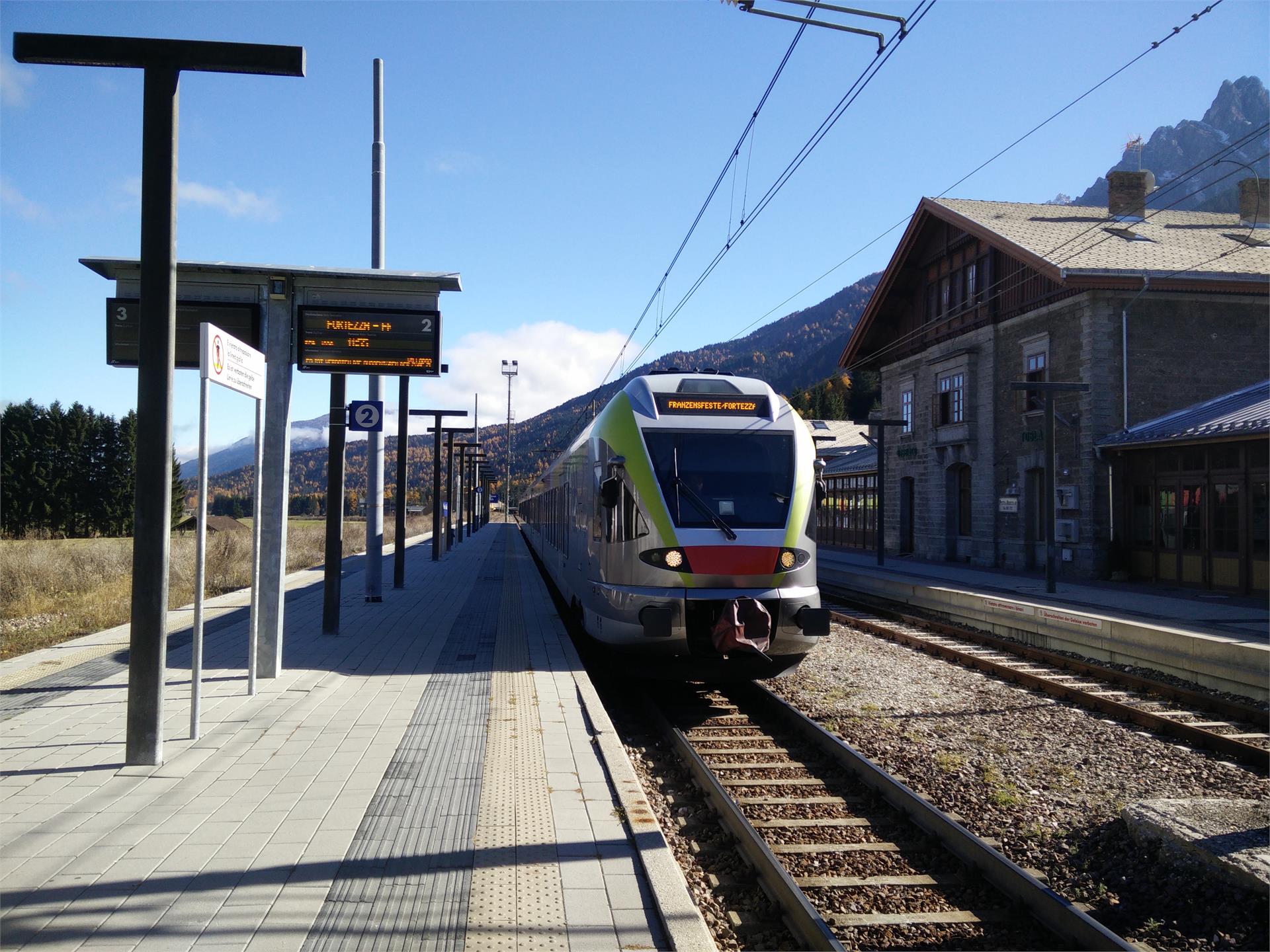 Der Bahnhof, von Wilhelm von Flattich entworfen, wurde 1871 zusammen mit der von der Südbahn-Gesellschaft vorangetriebenen Pustertalbahn in Betrieb genommen. Ab 1921 diente er zudem als Trennungsbahnhof zwischen der in Ost-West-Richtung verlaufenden Pustertal...
