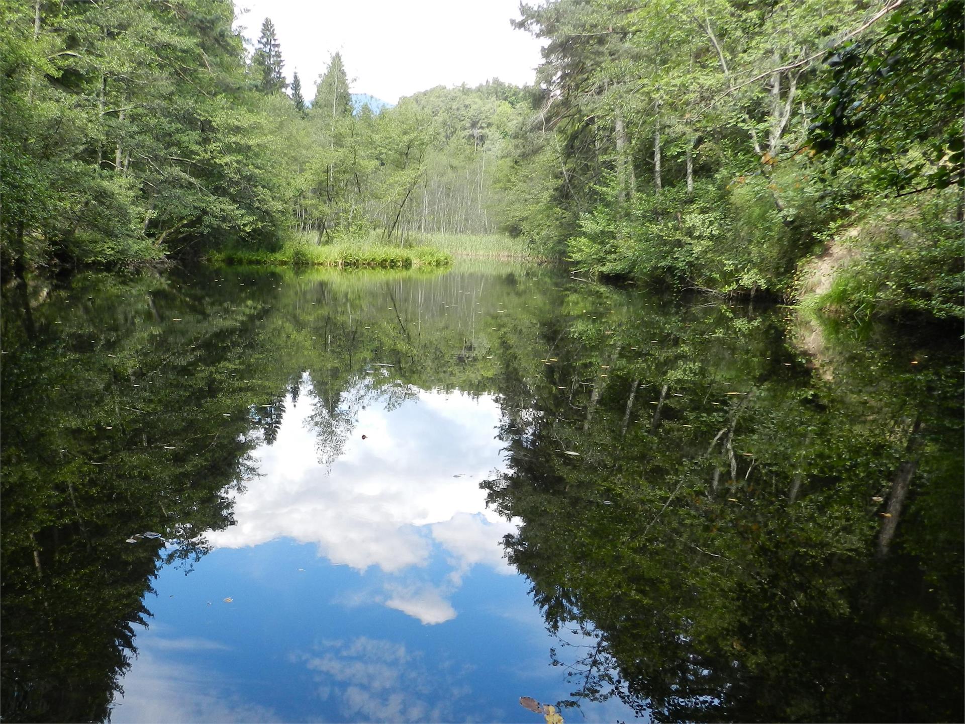 Von Naraun auf dem Weg nach St. Hippolyt liegt in einer kleinen Lichtung am Fuße der Kletterwand von St. Hippolyt der Narauner Weiher. Der dunkle Teich mit seiner kleinen schwimmenden Insel ist ein Biotop für die Insekten und Frösche. Sein Moorwasser ist ger...