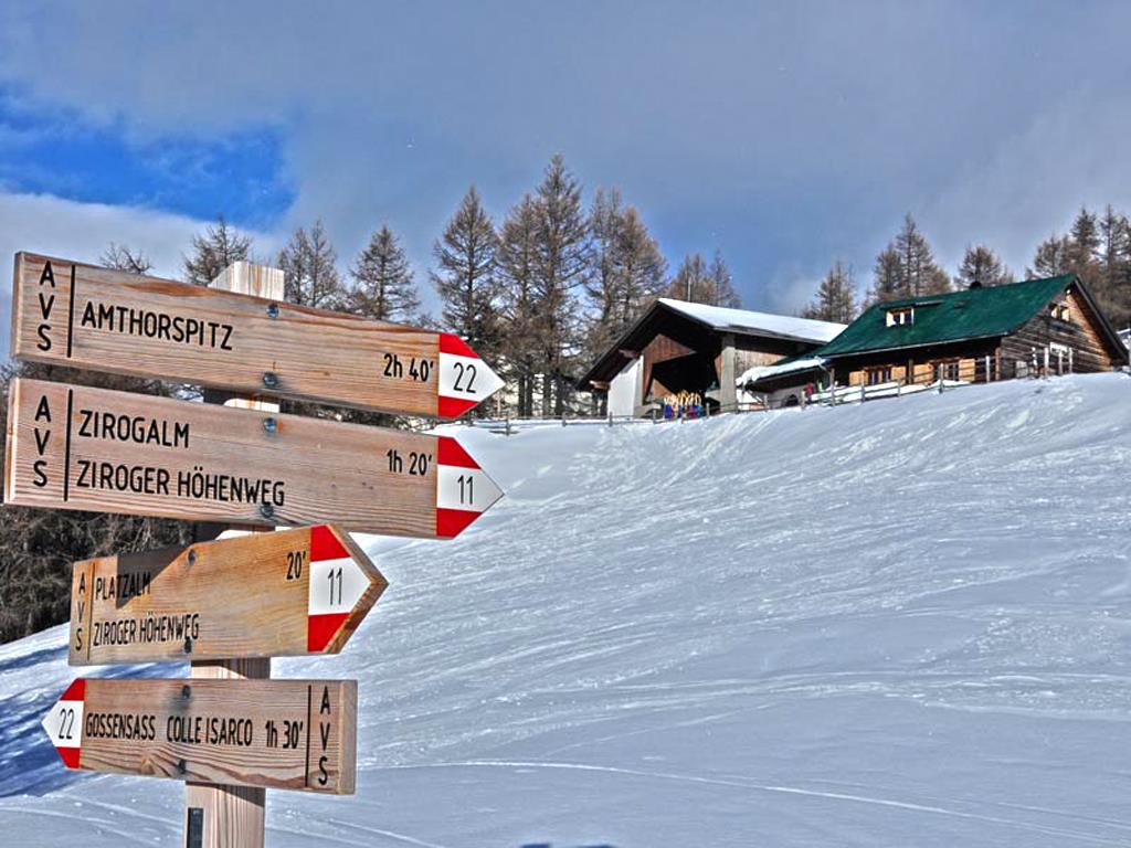 Von Gossensaß (1080 m) zunächst am besten mit dem Auto den Hühnerspiel-Wegweisern folgend und über die Alte Poststraße und den Platzhofweg hinauf zum Platzhof und weiter auf der normalerweise geräumten und mit Winterausrüstung problemlos befahrbaren Straße weiter hinauf bis zu einer geräumigen Linkskehre unweit des Hochwiedenhofes (ca. 1350 m; Parkplatz für mehrere Autos; hierher zu Fuß ab Gossensaß gut 1:00 Std.). Von da nun stets auf dem breiten gebahnten Forstweg zunächst in weit ausholenden Kehren durch Wald und über vereinzelte Lichtungen hinauf und zuletzt steiler empor zur Hühnerspielhütte (1868 m, während der Sommer- und Wintermonate bewirtschaftet); ab Parkplatz knapp 2:00 Std. Abstieg: Über den Aufstiegsweg (wegen längerer Flachstrecken nur bedingt auch mit der Rodel zu empfehlen); ca. 1:30 Std.