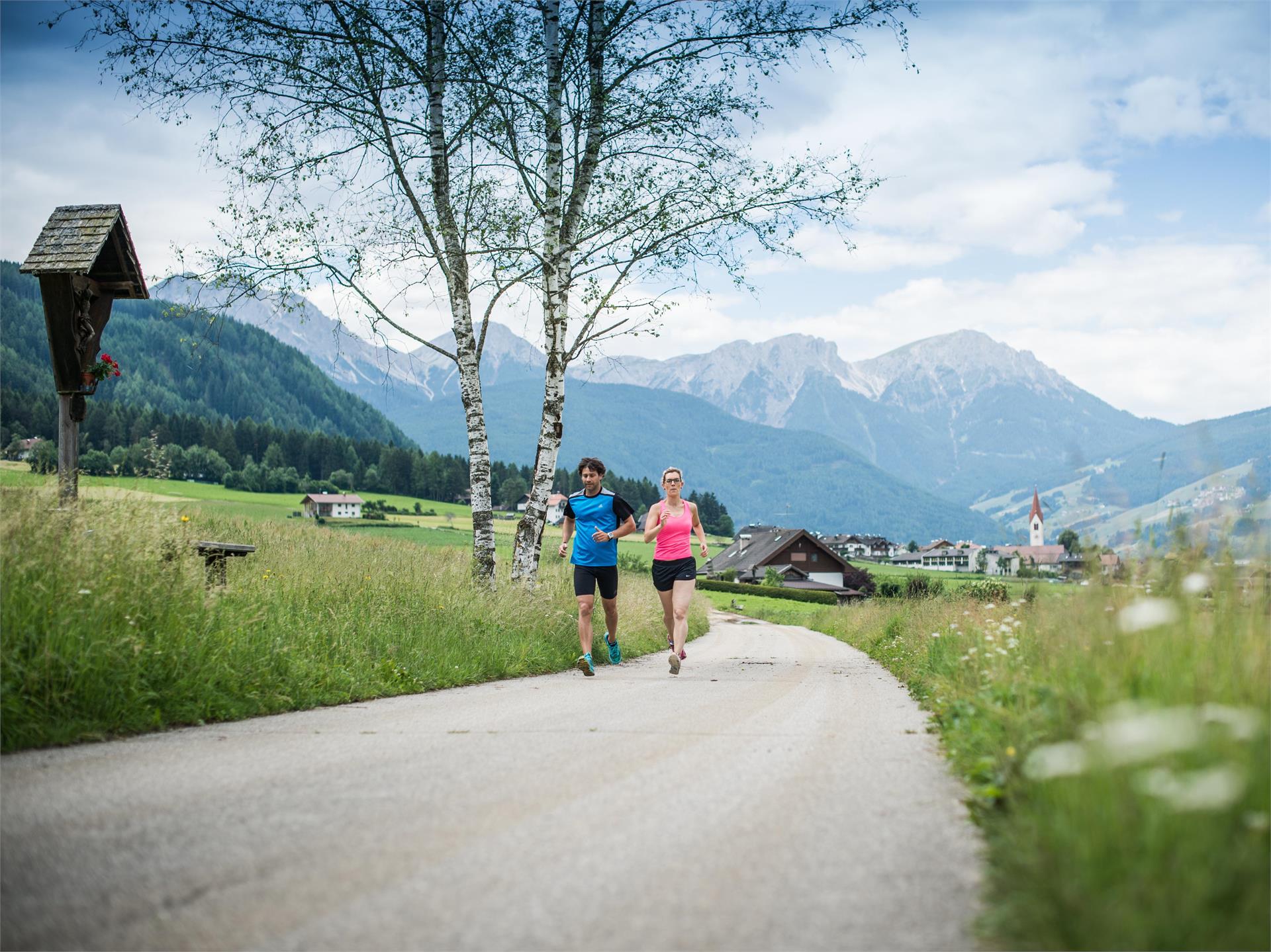 Von Niederrasen ausgehend zum Camping Corones. Hier rechts abzweigen und über dem Wanderweg “Dorfrunde” bis zum Jagdhäusl. Dem Weg weiter folgen bis zum Grillplatz Oberrasen. Hier die Staatsstraße überqueren und den Fluss entlang zurück nach Ober- und weiter nach Niederrasen.