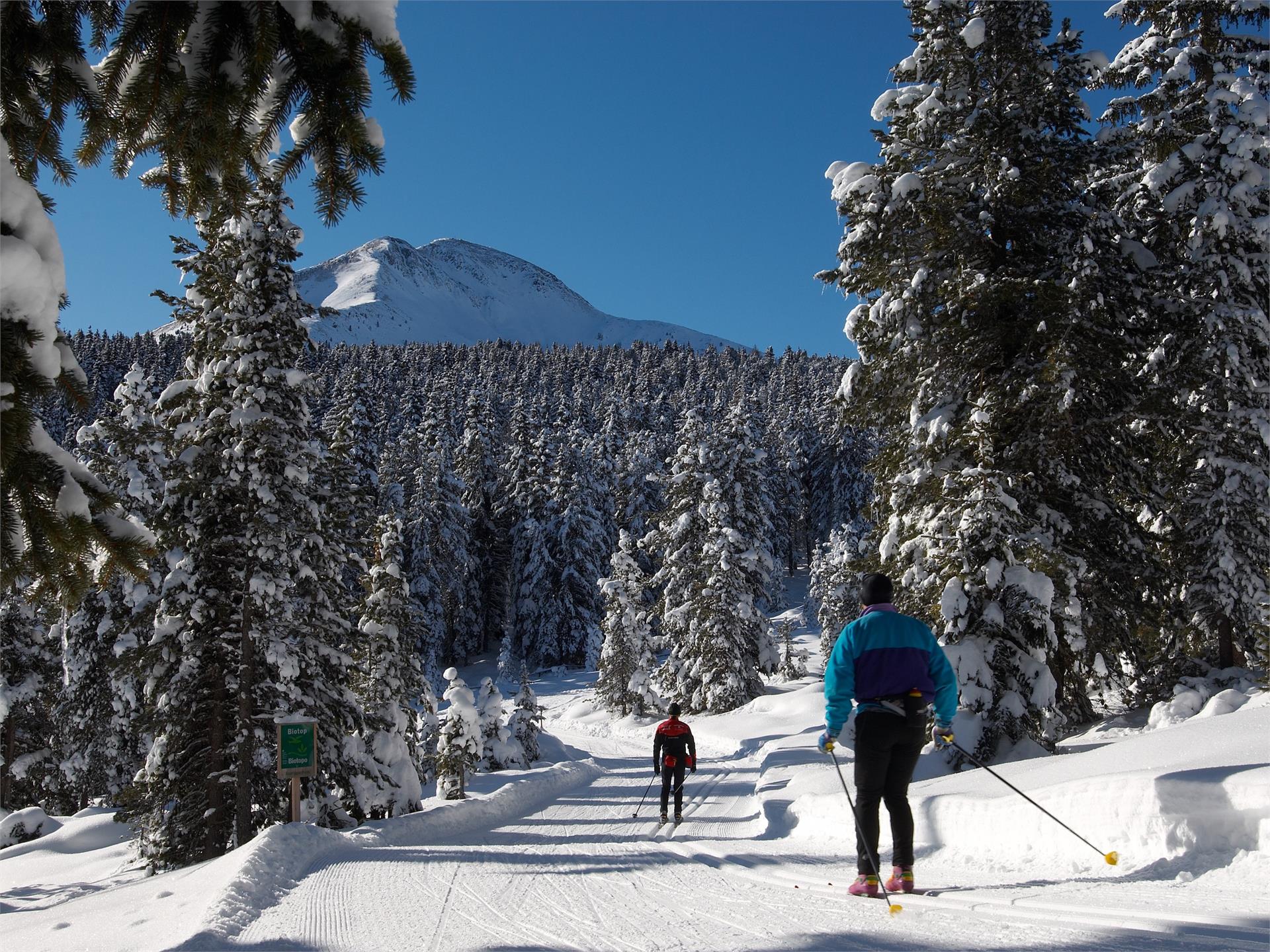 Vom Parkplatz an der Schmiederalm startet die Loipe Nr. 11a für Skater und klassische Langläufer, führt durch herrlichen Fichtenwald vorbei an der Schönrastalm bis ins Kösertal. Dort führt die Loipe Nr. 12b teils eben, teils gering ansteigend weitere 4 Kilometer in Richtung Neuhüttalm auf 1.791 m. Nach kurzer Rast geht es über die Loipe mit Markierung Nr. 14 vorbei am Auerleger und weitere 1,5 Kilometer auf Loipe Nr. 15 bis Jochgrimm, zwischen Weiß- und Schwarzhorn gelegen. Die Baumgrenze ist hier erreicht und die Blicke fallen auf die nahe gelegenen, tief verschneiten Berge.{MQ}Der Rückweg führt bis Neuhütt über dieselben Loipen. Ab Neuhütt führt Loipe Nr. 12a bis ins Kösertal. Auf diesem Streckenabschnitt kann man immer wieder auf das romantisch verschneite Kloster Maria Weißenstein und das Etschtal bis hinauf zu den Meraner Bergen blicken. Vom Kösertal führt die Loipe Nr. 11a wieder durch märchenhaften Fichtenwald zurück bis zur Schmiederalm.
