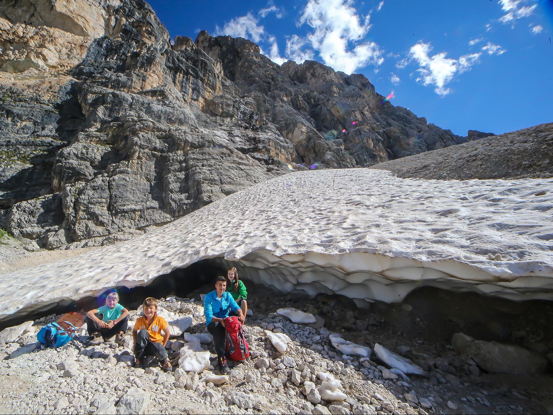 In besonders kalten, schneereichen Wintern bleiben an schattigen Stellen Schneeansammlungen zurück, die sich zu mächtigen Eismassen verdichten. Geröll- und Erdansammlungen isolieren die Oberfläche.