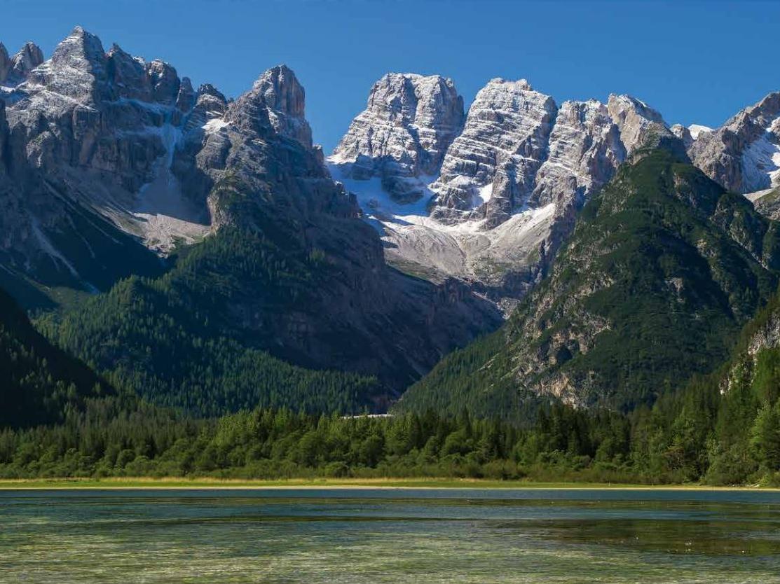 Ähnlich prächtig wie der nahe Toblacher See liegt der Dürrensee im inneren Höhlensteintal mit seinem einzigartigen Blick auf die Cristallogruppe!