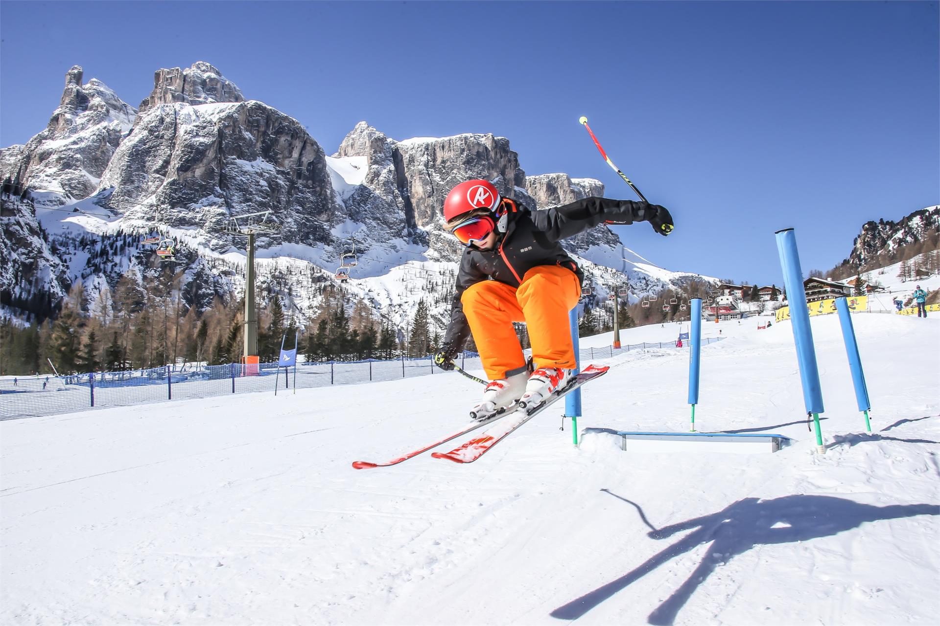 Der Skilift Pezzei dient dem Übungspiste der Skischule Colfosco. Auf dem breitläufigen Areal wurde auch der “Kids Funpark Colfosco” gebaut. Hier können Kinder sowohl auf Skiern als auch auf Snowboards eine lustige und spannende Zeit zwischen Sprün...