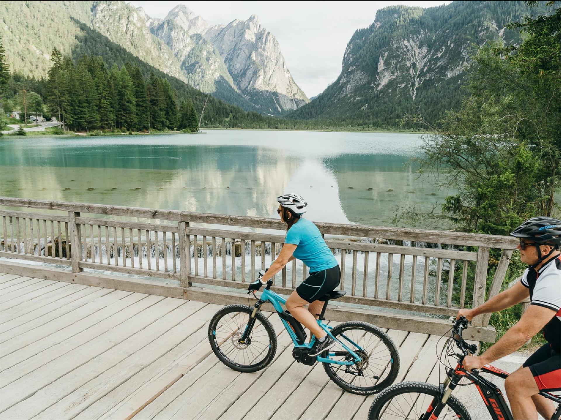 Schöne Familienradstrecke von Innichen nach Toblach und dann leicht bergauf zum Toblacher See mit Einkehrmöglichkeit.