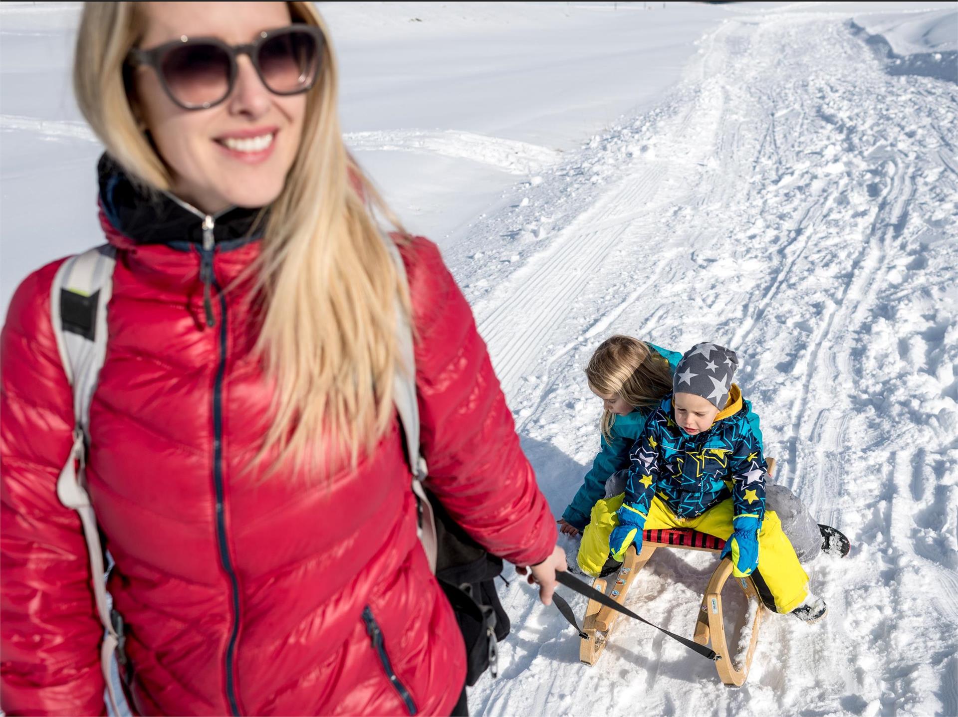 Der Aufstieg ist mit der Rodelbahn ident und erfolgt über den breiten Forstweg mit Mark. 8. Mit der Rodel geht es dann, in einem wechselvollen Licht-Schatten-Spiel meist durch den Wald talwärts. Auch Mondscheinrodler kommen bei Voranmeldung auf der Rodelbahn voll auf ihre Kosten.