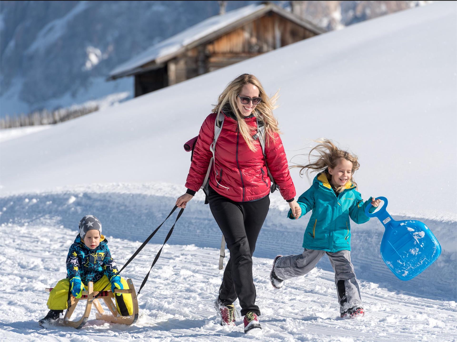 Von Saltria aus führt der Weg Richtung Hotel Tirler, dem Endpunkt der Rodelbahn. Die Aufstiegspiste ist Rodelbahn und Wanderweg zugleich und führt durch dichten Nadelwald hinauf zur Mahlknecht Hütte. In einem wechselvollen Licht-Schatten-Spiel geht es hinunter nach Saltria. Nächtlichen Rodelspaß garantieren die Vollmondnächte auf der Seiser Alm. Wer auf die Wanderung verzichten will, kann sich mit der Schneekatze zur Mahlknecht Hütte bringen lassen.