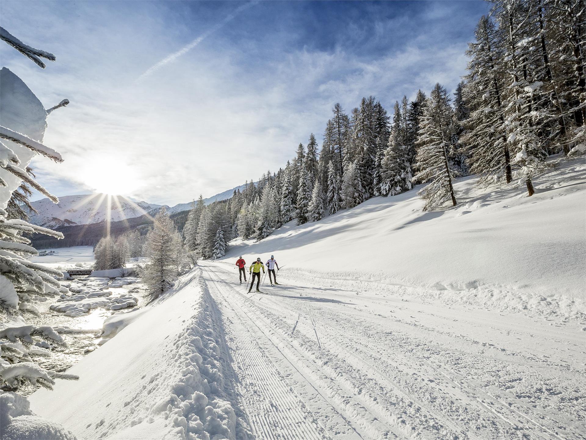 Langlaufen in der Heimat von Olympiasieger Dario Cologna: Die leichtere Rundloipe…aber immer mit einer herrlichen Aussicht auf die Bergwelt.  Das Val Müstair, Heimat von Langlauf-Superstar Dario Cologna und seinem Bruder Gianluca, liegt in der süd&o...