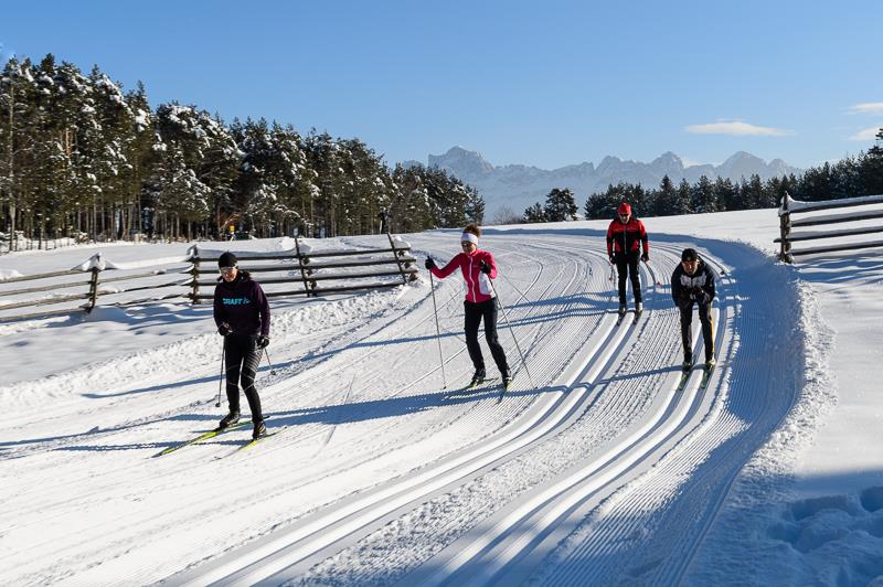 Auf dem  Lavazé – Pass in 1.800 Metern Höhe führen die Loipen durch Wälder und Wiesen bis ins Fiemme-Tal, Italiens Langlaufzentrum. Insgesamt sind es etwa 100 Kilometer bestens präparierte Pisten, auf denen sowohl Anfänger als auch Könner Passendes für sich finden.