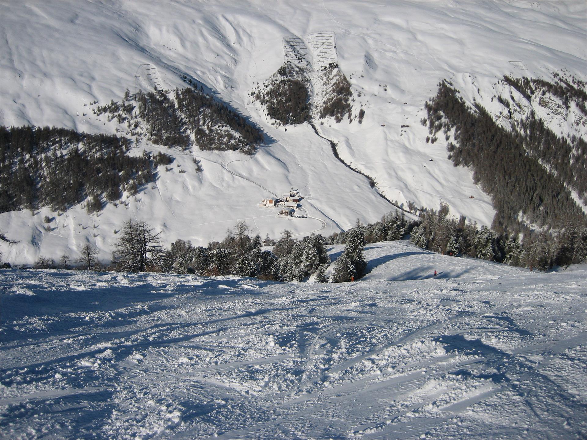 Die Rojenabfahrt ist eine schwarze Piste und daher sehr beliebt bei erfahrenen Skifahrern.