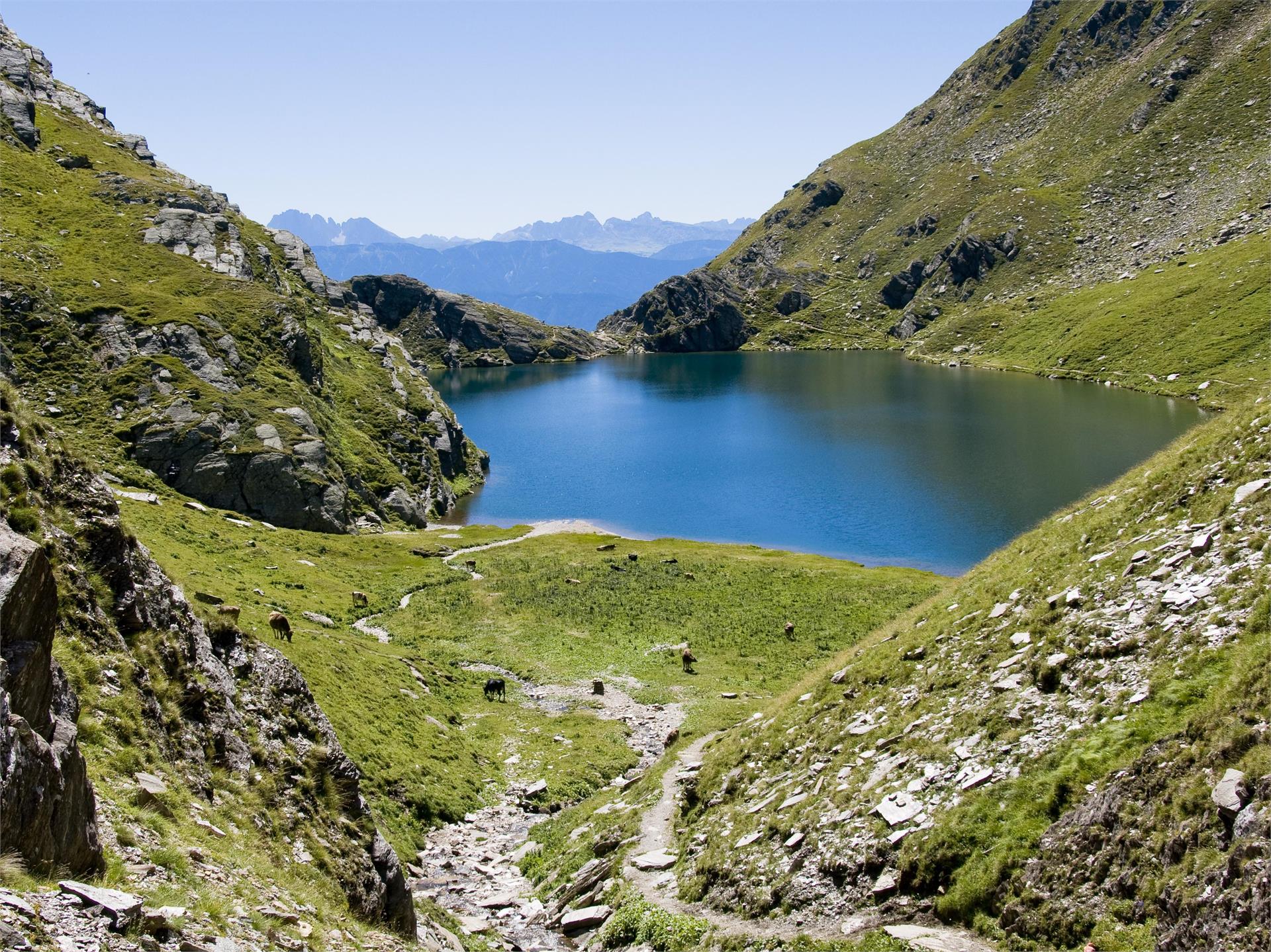 Bergstation Gitschberg – Nr.21 – Ochsenboden – Weißalm 2.177 m – Schellenbergsteig – Nr. 6 – Seefeldalm 2.340 m – Mittlerer Seefeldsee – Kleiner See – Seefeldspitz – Rückweg – nr. 6 – Richtung Altfasstal – Nr. 15 – Wieserhütte 1.850 m – Pranter Stadl Hütte 1.850 m – Nr. 15 – Großberghütte 1.644 m – Parkplatz Altfasstal – Leitensteig Nr.10 – Seilbahn Mühlbach-Meransen – Talstation Bergbahn