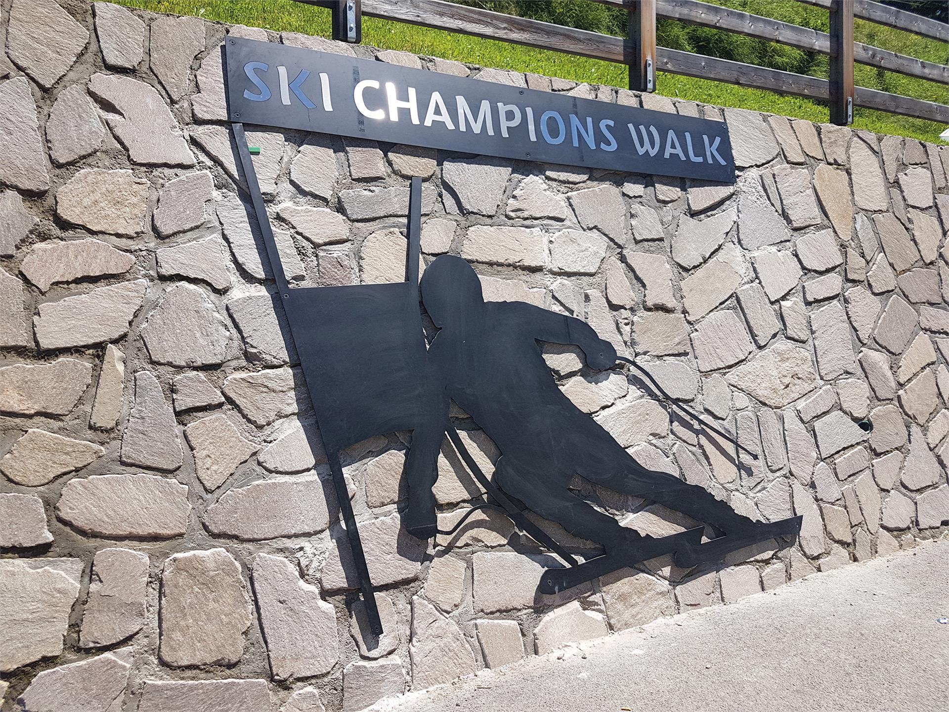 Der Walk ist den Ski-Champions gewidmet die in Gröden seit 1969 ein Weltcup Rennen gewonnen haben oder 1970 Weltmeister wurden, sowie all jenen die mit viel Ehrgeiz und Pioniergeist an die Idee des Skifahrens in Gröden geglaubt haben.