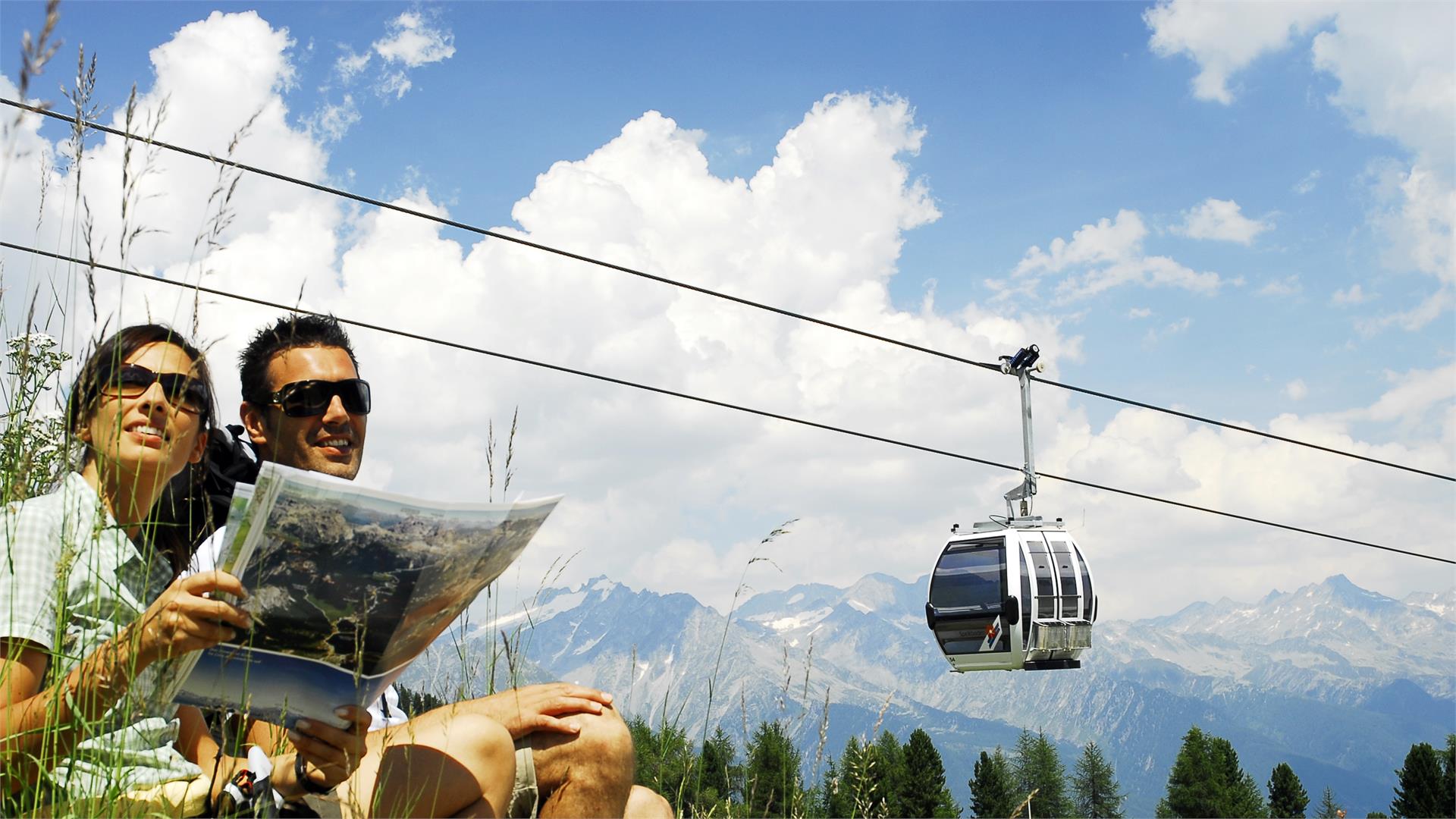 Gleich neben der Talstation (Richtung Sand in Taufers) hält man sich rechts und geht kurz über die schmale Asphaltstraße (Wegschilder) hinauf bis zur ersten Kurve. Dort auf einem Waldweg geradeaus, zum Teil recht steil in Richtung Michlreis ansteigen (Wegschilder, Markierung 29A), bis dieser Weg auf einen Wirtschaftsweg trifft. Nach rechts gehts über diesen Fahrweg weiter (Beschilderung), um schließlich eher fl ach nach Michlreis zu gelangen. Man setzt durch den kleinen Weiler und weiter über die Straße hinauf zur ehemaligen Mittelstation (jetzt „Restaurant Mittelstation“) fort. Achtung: nicht über die Piste ansteigen, sondern geradeaus weiter gehen (Markierung Nr. 29)! Kurz geht es am Waldrand entlang, dann steigt man leicht an und hält sich an der folgenden Weggabelung rechts (Markierung 29B), bis der Weg in den Daimerweg (Nr. 27) mündet. Über diesen gelangt man, hauptsächlich durch Wald, am Schluss über die Skipiste, hinauf zur Bergstation.
