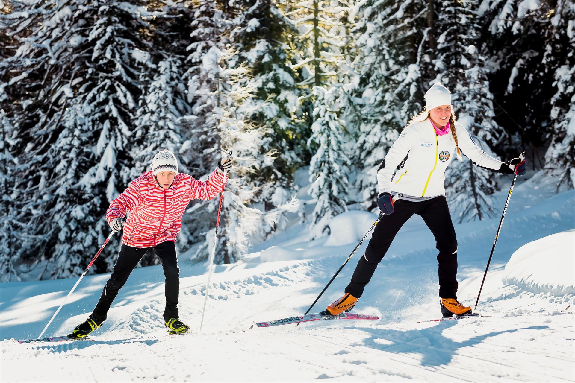 Doppelspur für klassischen Langlauf und Skating Schwierigkeitsgrad: mittel. Einige Bergab- und Bergauf-Abschnitte sind zwar kurz aber technisch anspruchsvoll. 5 km