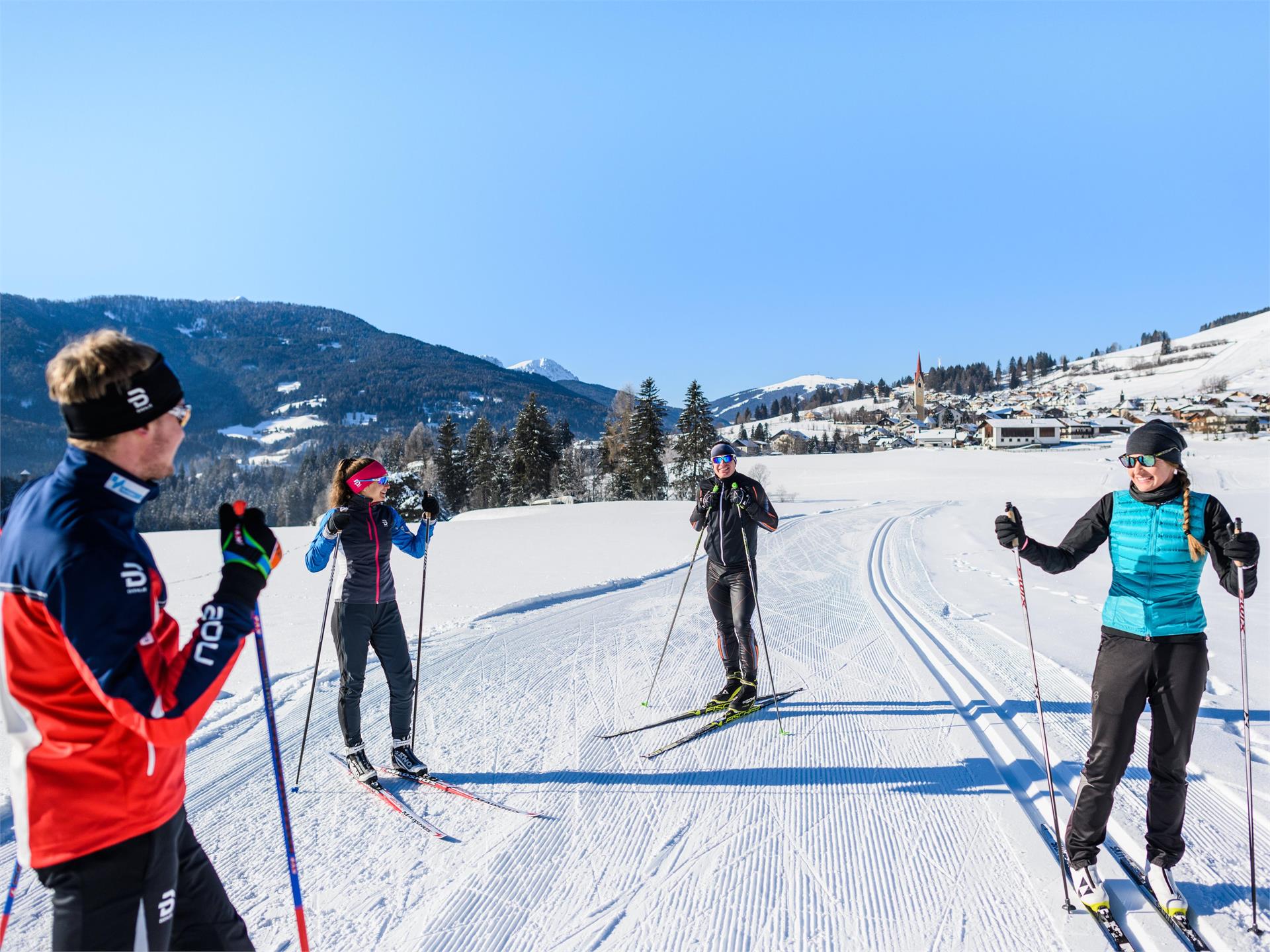 Verbindung von Taisten an die Gsieser Tal Loipe. Vom Kreuzungspunkt beim Brückenwirt/Brücke kann man entweder ins Gsieser Tal nach St. Magdalena laufen oder nach Welsberg und in Bahnhofsnähe weiter ins Gebiet 3 Zinnen Dolomites.