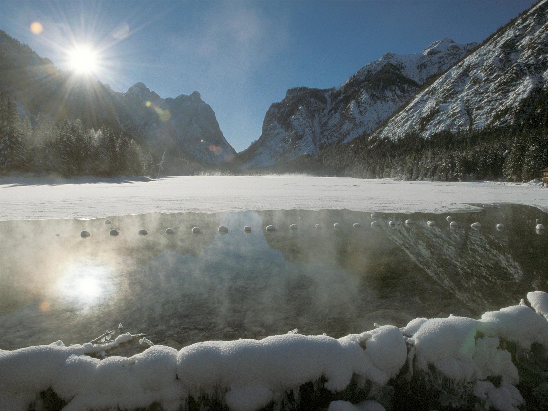 Die Winterwanderung rund um den Toblacher See startet beim Seerestaurant westlich des Toblacher Sees. Der Weg Nr. 14 führt inmitten im Wald rund um den Toblacher See.