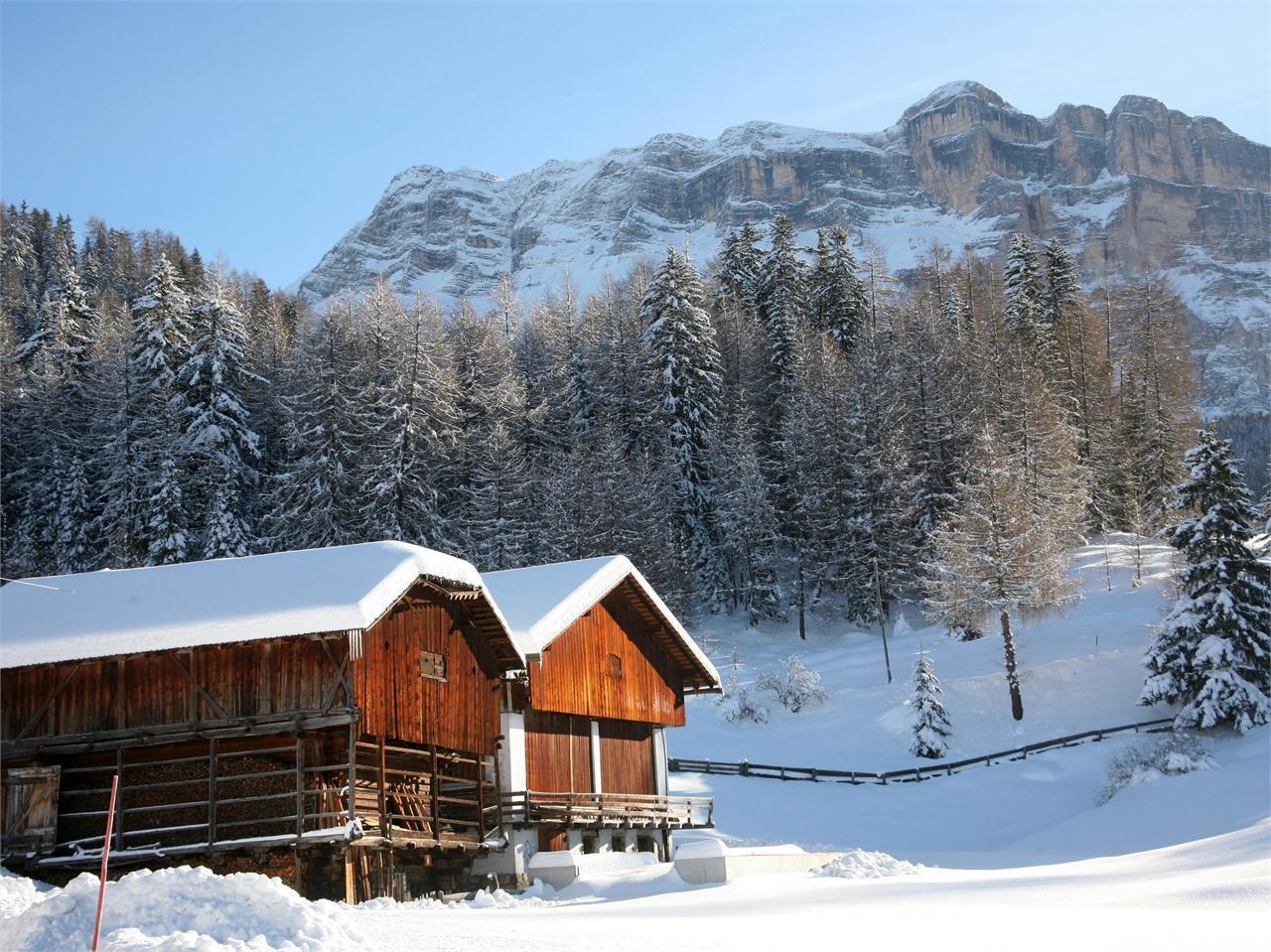 Der Weg durchquert zunächst eben, dann absteigend die Almwiesen von Armentara. An einem malerischen See und an den Almhütten von Razuns vorbei, kommt am Weiler Valgiarëi. Immer der Beschilderung “Badia – Roda de Armentara” folgend, gelangt man zu einigen typischen Bauernhöfen (Cialaruns, Andrac, Alfarëi und Ruac) und bis nach San Linert und Badia zum Ausgangspunkt (Bushaltestelle).
