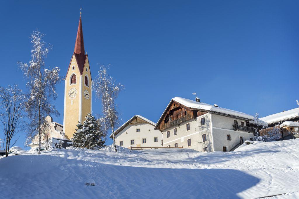 Vom Tourismusbüro Taisten geht man rechts an der Autowerkstätte vorbei und die steile Straße hinauf, am „Marenklhof“ vorbei, bis zur Anschlagetafel mit dem Hinweis „Bergbauernhof Seppila“ und der „Nr. 38 B“. Dort links ab und ständig der Asphaltstraße bis zum Weiler Haspa (1360m) entlang. Auf derselben Strecke wieder bis zur engen Linkskurve mit dem Schild „Nr. 21 A“ zurück, rechts durch eine herrliche Waldzunge bis zur ersten Querstraße. Hier ein weiteres Mal „bergan“, an der alten Mühle vorbei und auf der Asphaltstraße geradeaus bis an den Waldrand. In großen Schleifen, über tiefverschneite Wiesen und Felder, an erdverwachsenen Bauernhöfen und einem herrlichen Dolomitenblick gegen Südosten, gelangt man zu einer wichtigen Kreuzung 1498m, mit strengem Richtungswechsel nach links. Auf der Bergstraße mit der Markierung „Nr. 31 und 56“ geht’s über die Aussichtswarte Guggenberg hinab zur Unterrainer Straße. Dort links weiter am Hotel Alpen Tesitin vorbei zum Ausgangspunkt.