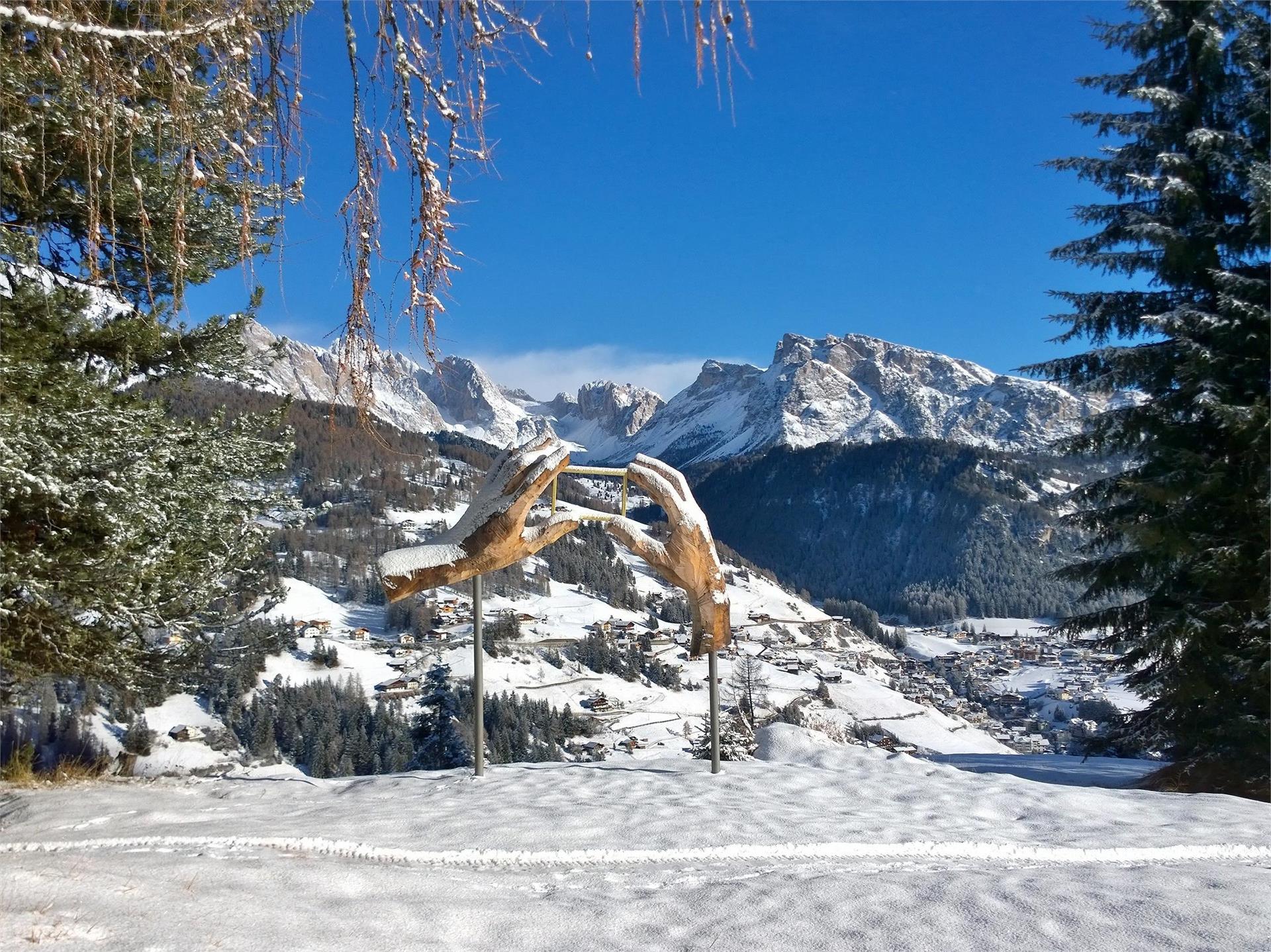 Auf diesem Kunst-Natur-Pfad auf Monte Pana stehen das Naturerlebnis, die kunstvoll anmutende Bergkulisse und die tief verwurzelte Tradition des Schnitzhandwerks im Vordergrund. Die Kunstwerke bekannter Grödner Bildhauer entlang des Weges setzen St. Christina, Monte Pana und die umliegende Bergwelt gekonnt in Szene.