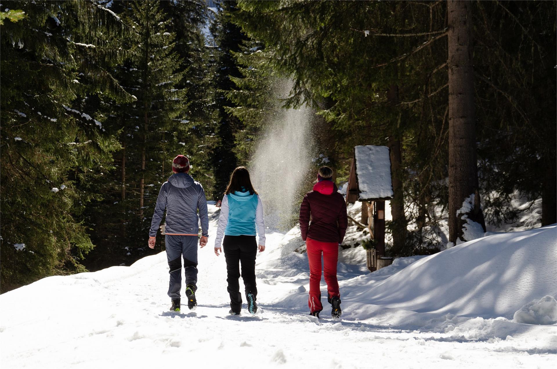 Startpunkt der Wanderung ist der öffentliche Parkplatz unterhalb des Hotels Bella Vista. Vom Parkplatz aus begibt man sich bis zur Rechtskehre (Hotel Bella Vista), dann biegt man nach links ab und folgt der Beschreibung „Drei Brunnen“ bis hin zum Nationalparkhaus naturatrafoi. Nach dessen Durchquerung auf einem schönen Fußweg zur Kirche von Trafoi. Immer folgende der Beschilderung „Drei Brunnen“ auf Wiesenwegen und teils der Straße entlang, taleinwärts bis zu den letzten Häusern. Hier nach links und weiter auf dem Annaweg (Nr.6) durch den romantischen Fichtenwald bis man die Brück erreicht. Nach einer eineinhalbstündigen leichten Wanderung erreicht man das Ziel – die Heilligen Drei Brunnen.