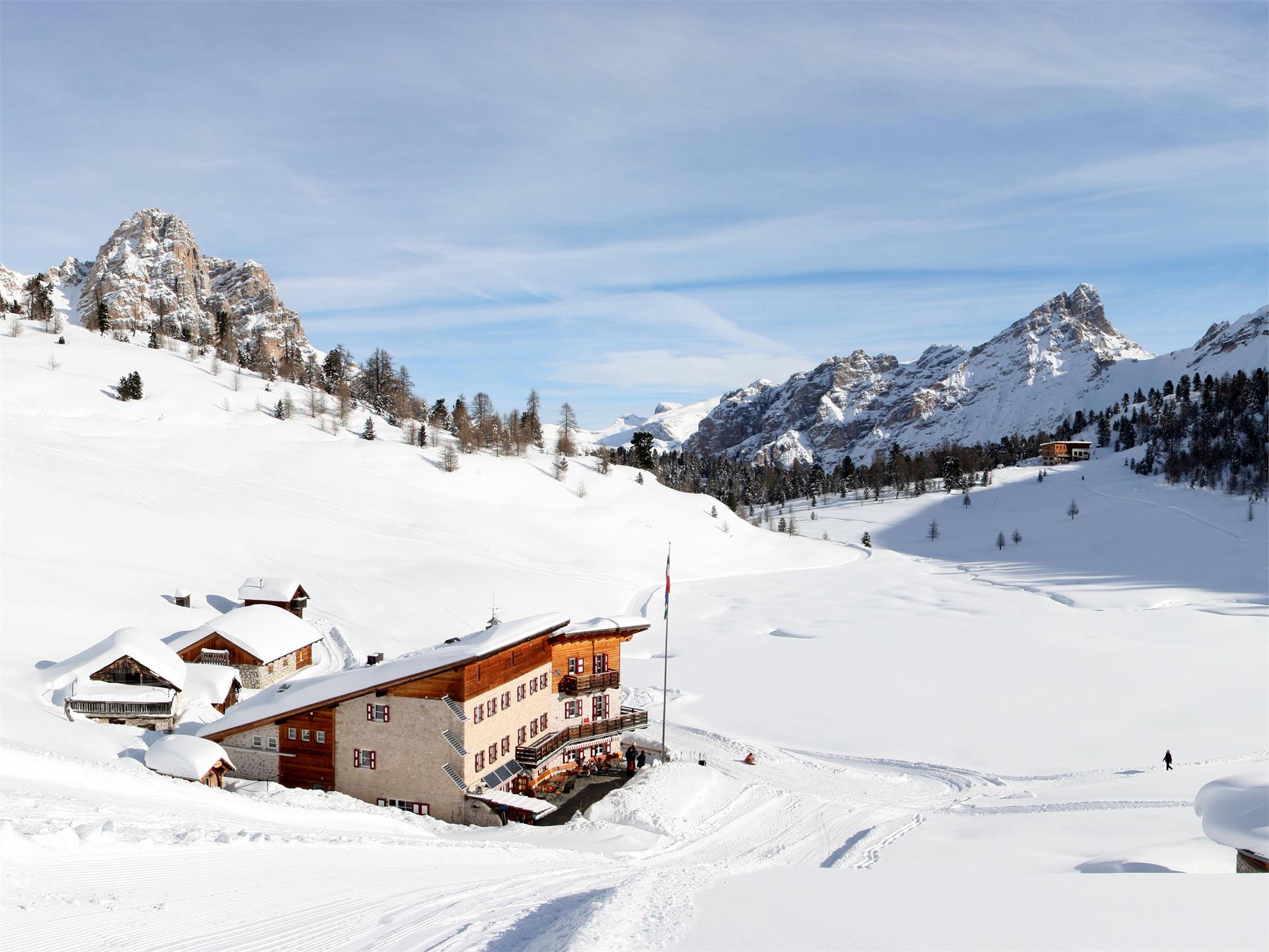 Der Winterspaziergang zur Fanes-Alm lädt ein zu einer Wanderung in einem grandiosen Panorama. Von Pederü aus erreicht man auf einer Zufahrtsstraße die Fanesalm. Die Fanes- und die Lavarella-Hütten bieten zudem einen Beförderungsdienst mit der Schneekatze an. Ein Geheimtipp: Nur 15 Gehminuten von der Fanes-Hütte entfernt erreicht man den Limopass mit einem wunderschönen Ausblick auf das „Fanesreich“.