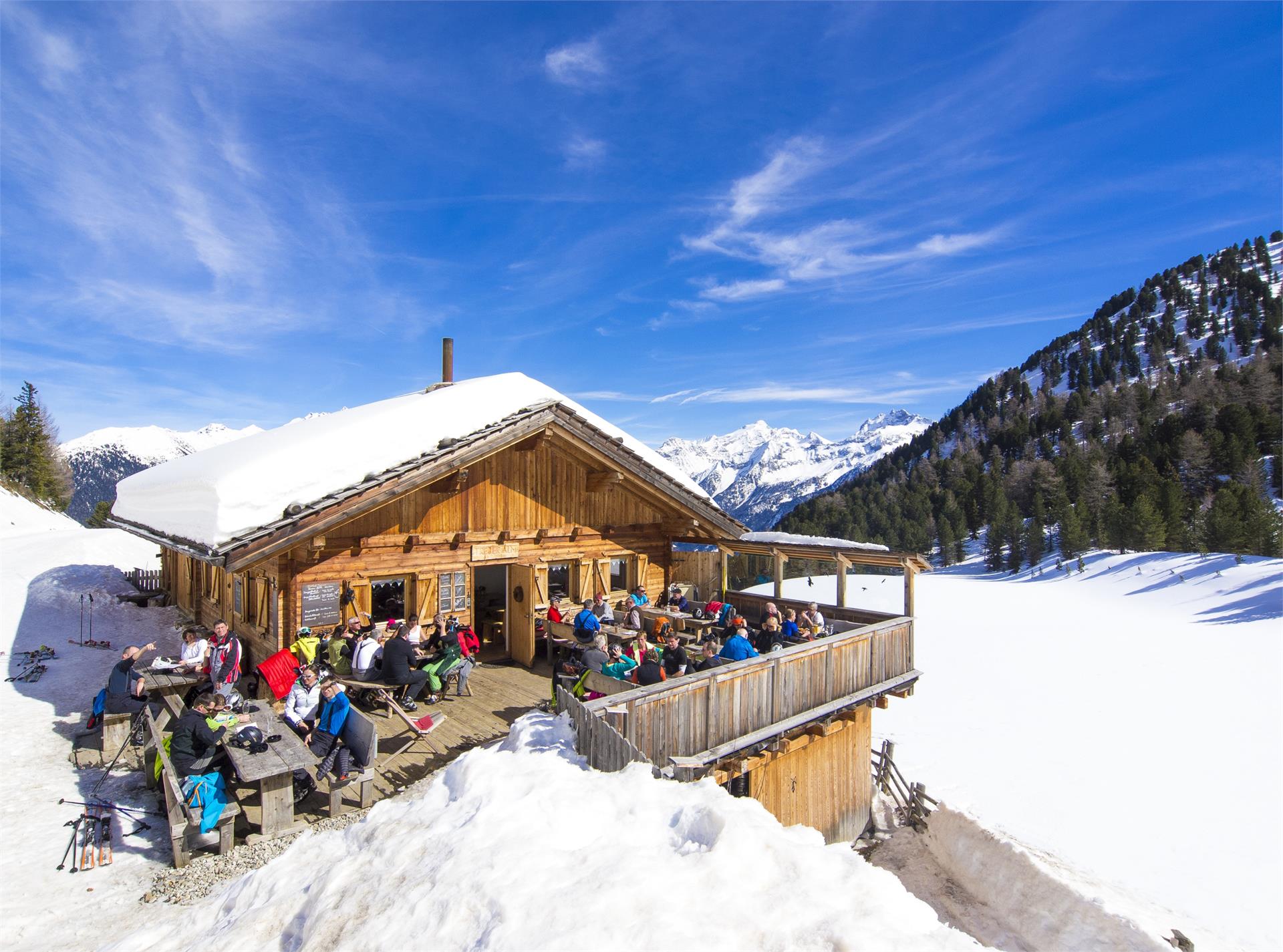 Auffahrt mit der Kabinenbahn Speikboden bis auf 2000m. Von dort nach links zur Trejer Alm (Weg Nr. 26).