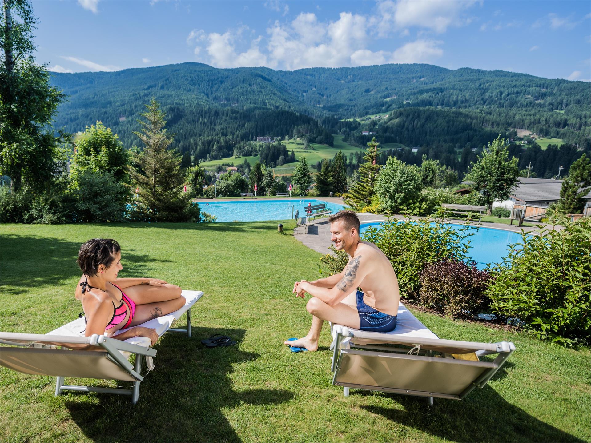 Das Freischwimmbad Panorama erreicht man in ca. 15 min. zu Fuß vom Ortszentrum. Mit dem Auto ist das Schwimmbad über den Klosterweg in Welsberg erreichbar (bei der Kreuzung Gsieser Tal-rechts abbiegen).—Anfahrt über Innsbruck/Brenner (A): Sie fahren auf der Brennerautobahn (A22) bis zur Ausfahrt Brixen/Pustertal, dann weiter auf der Staatsstraße (SS49-E66) bis ins Pustertal. Entfernung ab Ausfahrt Brixen/Pustertal bis Welsberg (58 km). Anfahrt über Lienz (A): Sie erreichen uns auch über Lienz in Osttirol (A). Sie passieren die österreichisch-italienische Grenze zwischen Ahrnbach und Winnebach (B100-E66) und fahren auf der Staatsstraße (SS49-E66) weiter bis nach Welsberg.