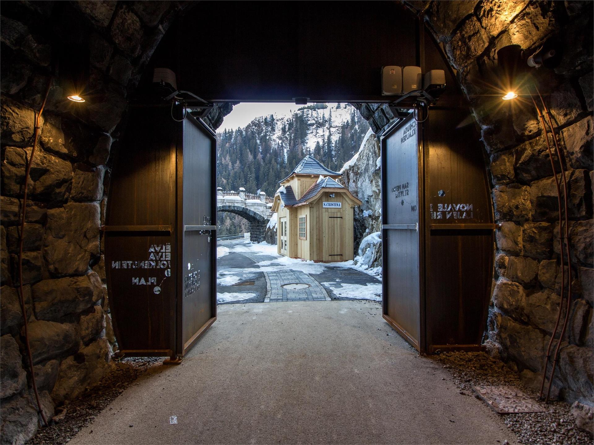 Vom Jahre 1917 bis 1960 fuhr das Grödner Bahnl durch den Bahntunnel in der Nähe der Pfarrkirche in St. Christina. Nach aufwändigen Restaurationsarbeiten wurde der Tunnel im Jahre 2017 wiedereröffnet und für geschichtsbegeisterte Passanten und für Fußgänger entlang des Bahnweges z...