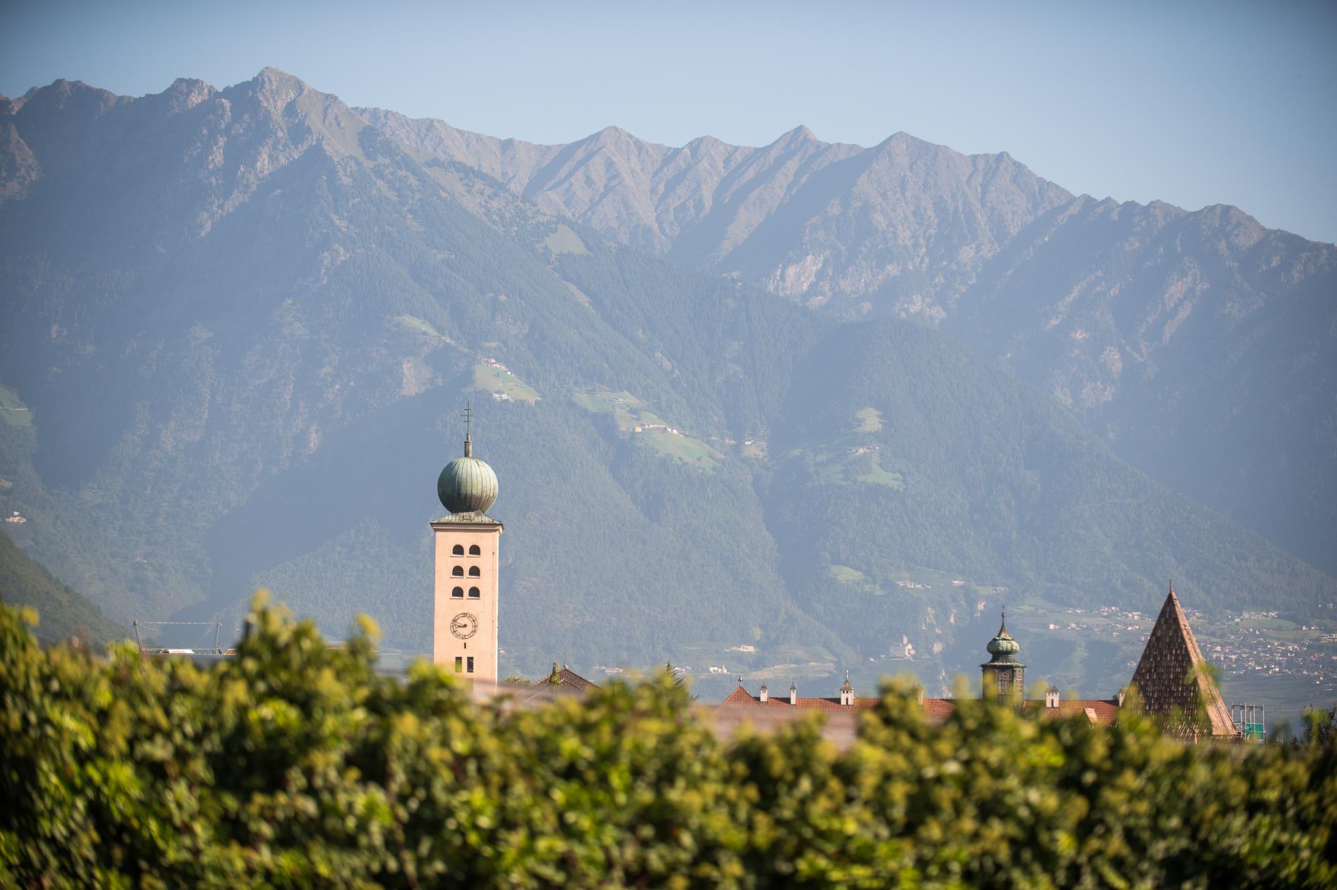 Das kugelförmige Dach des Turmes wird im Volksmund der “Lananer Apfel” genannt. Die heutige Haupt-Pfarrkirche von Lana wurde 1938-1950 nach Plänen des bekannten Stuttgarter Kirchenbauers Otto Lindner im Stile einer altrömischen Basilika erbaut.