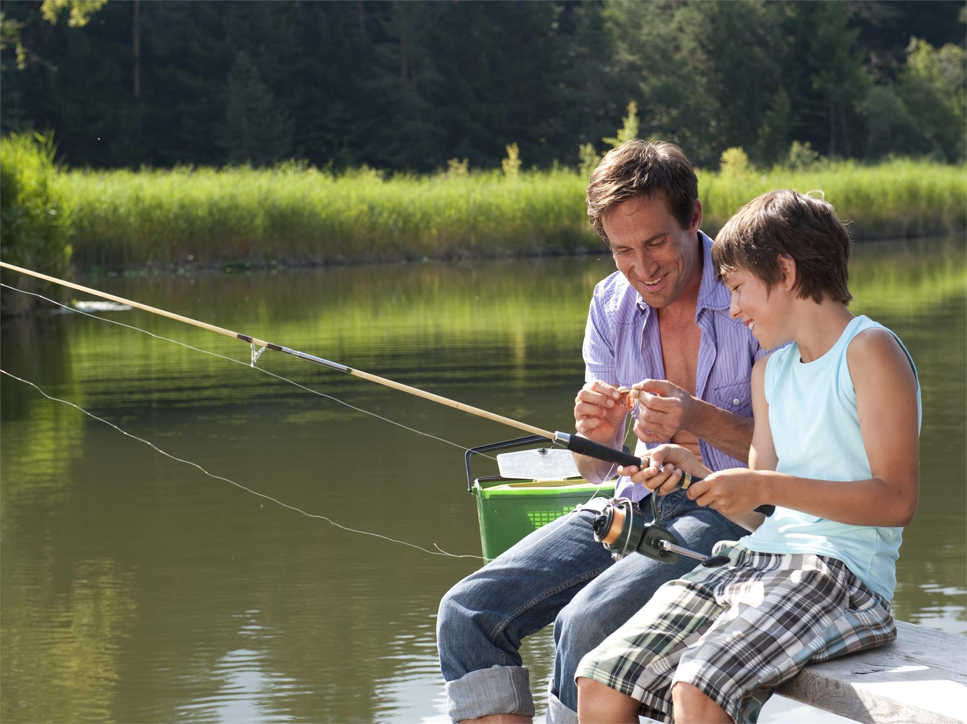 Wer zum Fischen nach Völs am Schlern kommt, ist beim Huber Weiher richtig. Forellen, Karpfen oder Saiblinge können an die Angel geraten.