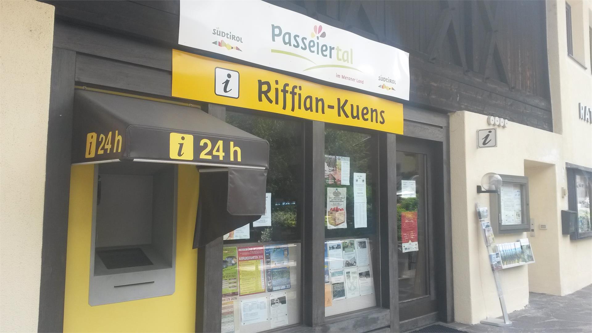Das Infobüro Riffian-Kuens befindet sich an der Hauptstraße in Riffian. Hier erhalten Sie alle Infos bzw. Broschüren rund um das Passeiertal, Unterkünfte, Gastronomie, Veranstaltungen, Sehenswertes, Wandermöglichkeiten und sonstige Aktivitäten.
