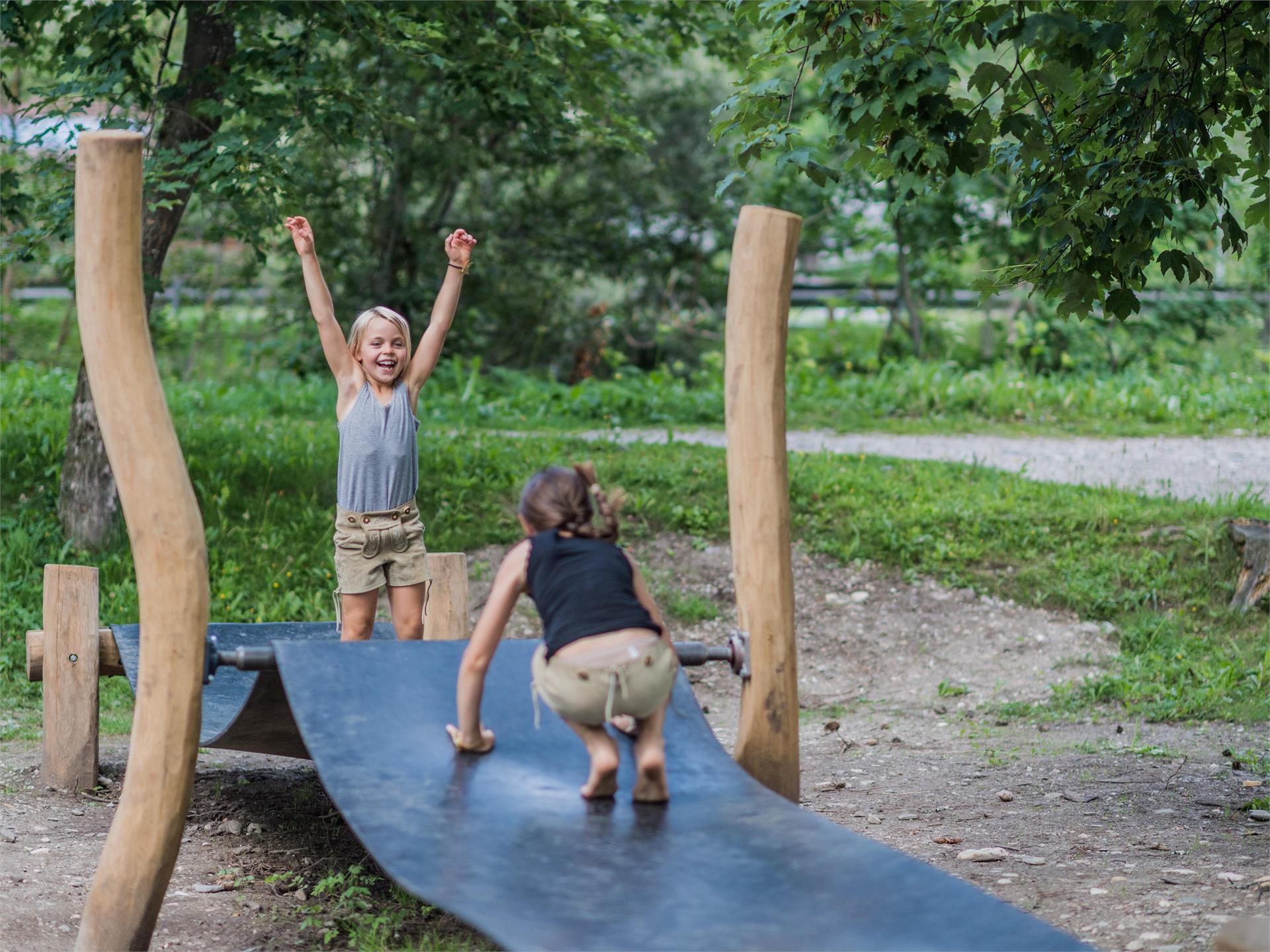Unsere kleinen Gäste können sich auf unseren öffentlichen Kinderspielplätzen nach Herzenslust austoben. Kleiner Waldspielplatz in der Unterrainer Straße in Taisten.