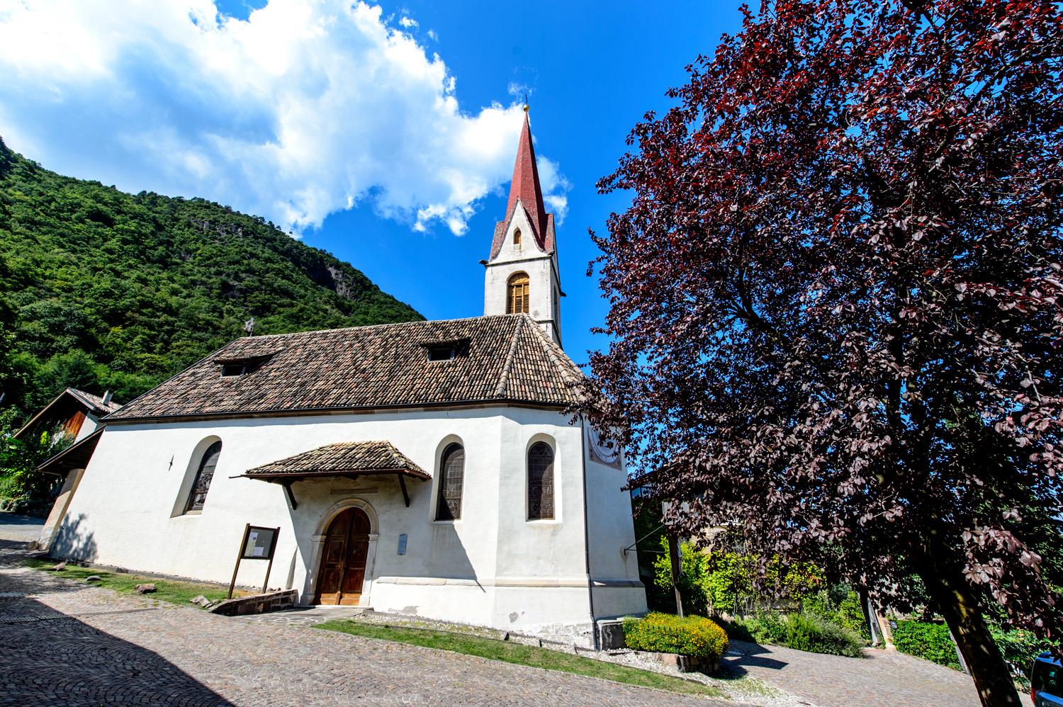Die Baudaten sind an der Kirche selbst angeschrieben. Die Jahreszahl 1581 findet sich am Schlussstein des Chores, 1586 am Südeingang. Der Chor der Kirche wurde in gotisch-renais-sancehaften Mischformen errichtet. Der Hochaltar birgt ein Altarblatt des Malers Johann Degler aus Villnöss, eine Stiftung des Tegernseer Abtes Petrus von Guetrather.