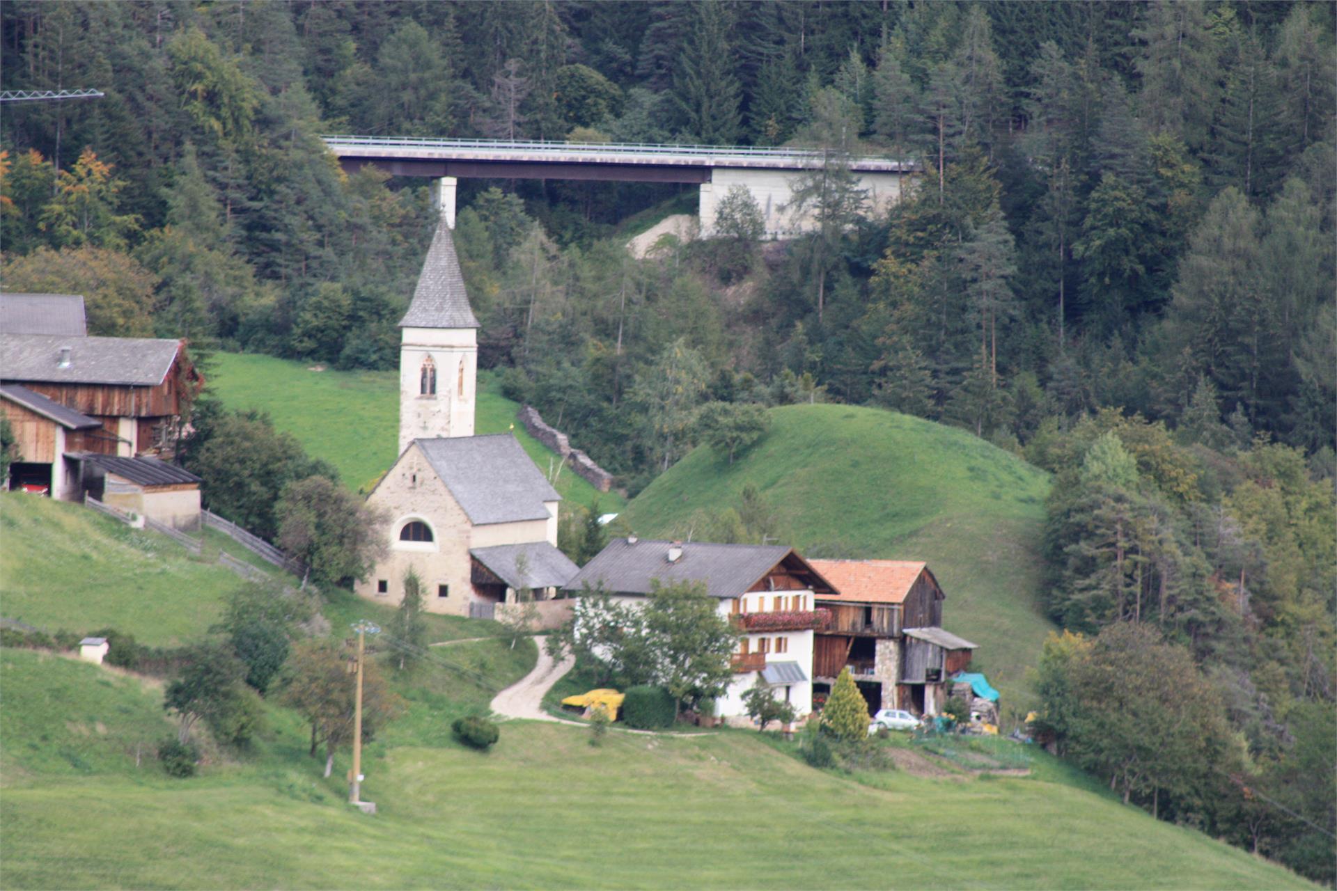 St. Katharina in Völser Aicha Die ursprünglich dem Hl. Michael geweihte Kirche – der Hof daneben heißt „Michaeler“ – ist 1293 urkundlich bezeugt. Gegen Ende des 15. Jh. wurde die romanische Apsis durch einen gotischen Chor mit nördlich angebautem Turm ersetzt und das Langhaus mit einem Sterngewölbe versehen. Aufmerksamkeit verdienen die nie übermalten farbenprächtigen Fresken an der südlichen Außenwand der Kirche aus der Zeit um 1420. Ausdrucksstark vor allem in Gestik und Mimik, erzählen sie die Legende der christlichen Königstochter Katharina von Alexandria, die wegen der Zerstörung des Götzenbildes (obere Reihe 1) bei Kaiser Maximinus verklagt wird (2), der sie auspeitschen (3) und in einen Turm sperren lässt, wo sie von Engeln getröstet wird (Bild 5, nach Kreuzigung über der Tür). Sie besteht ein Streitgespräch mit heidnischen Philosophen, die der Kaiser geschickt hat (6). Es gelingt ihr sogar, einige zum christlichen Glauben zu bekehren, die daraufhin zum Feuertod verurteilt werden (untere Reihe 1). Auch die Kaiserin, die sie in der Nacht besucht (2), bekehrt sich und wird auf Befehl des Kaisers enthauptet (3). Die Heilige soll gerädert werden, doch Engel zerschlagen das Rad (Bild 4, rechts von der Tür). Schließlich wird auch Katharina enthauptet (5) und von Engeln auf dem Berg Sinai begraben, wo Kaiser Justinian 557 das berühmte Katharinenkloster erbauen ließ (6).