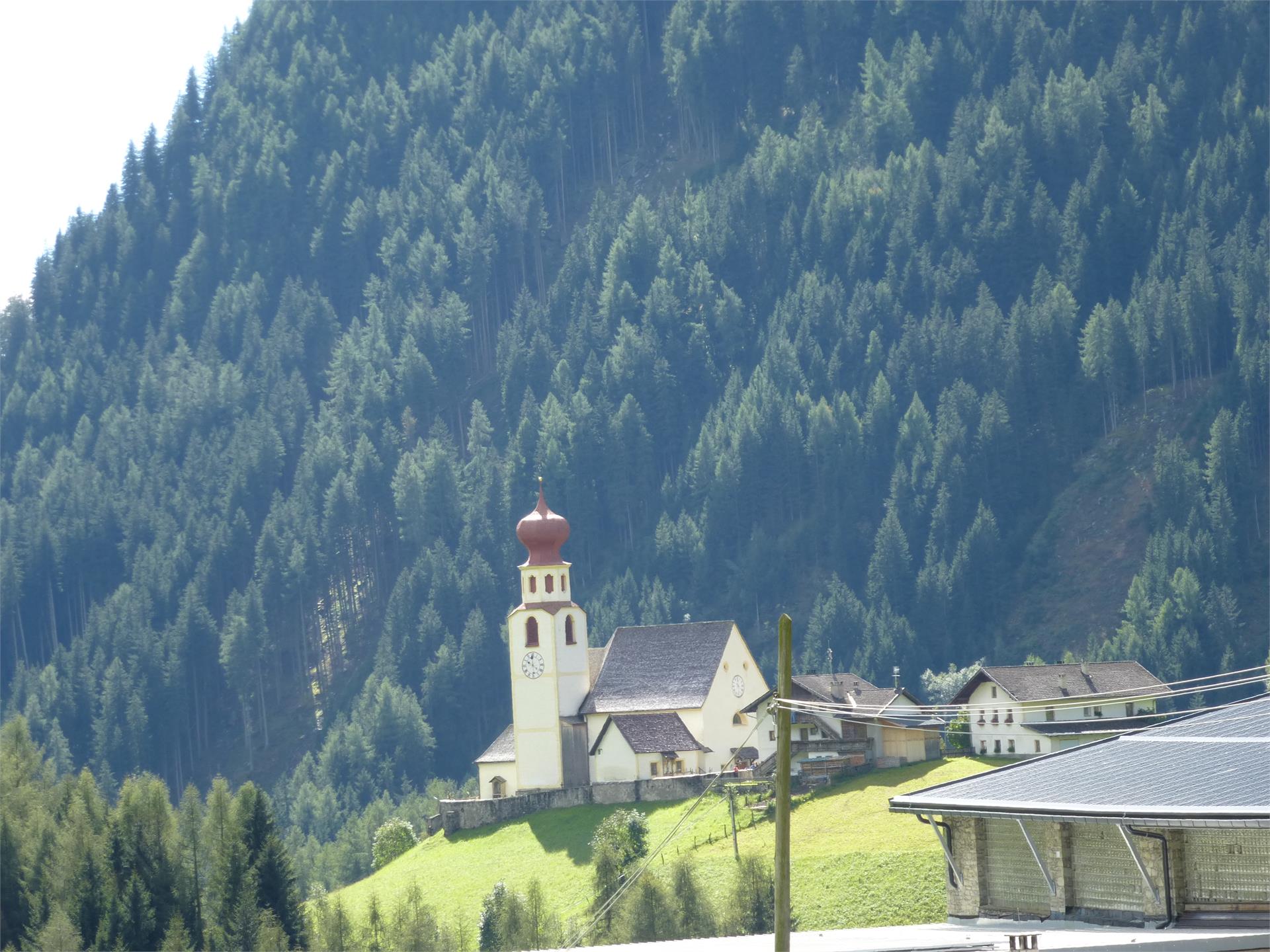 Die Kirche wird 1397 erstmals erwähnt. Der heutige Bau geht auf die Jahre 1808-1810 zurück und besitzt noch einen Teil des polygonalen Presbyteriums und das Fundament des Glockenturms aus dem 14. Jh. Der rechteckige Glockenturm hat ein Zwiebeldach, das auf einem achteckigen Vierungsturm ruht. Im Inneren der Kirche ist das Tonnengewölbe mit Fresken von Plazidus Altmutter geschmückt. Im Chorgewölbe ist die Dreifaltigkeit dargestellt. Den Altar schmückt ein Flachrelief des Hl. Martin in neugotischem Stil.