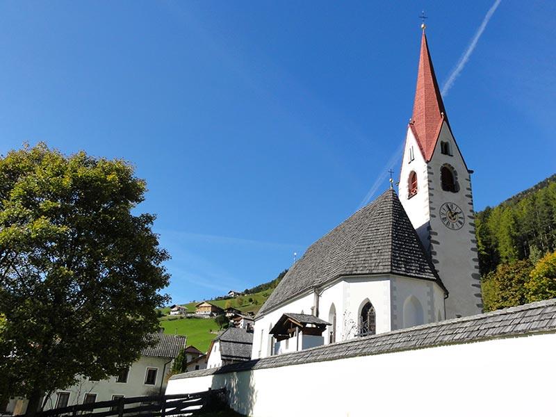 Die Kirche in Ahornach ist ein wunderbares Beispiel für den spätgotischen Kirchenbau des Pustertales. Der Steinmetz Valentin Winkler aus Pfalzen hat sie 1512 erbaut, 1519 wurde die Kirche geweiht. Der Bau hat Sockel und ein umlaufendes, gekehltes Dachgesims, ein Spitzb...
