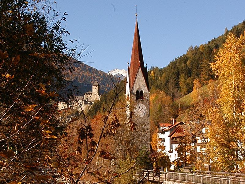 Die Kirche in St. Moritzen wurde 1512 erbaut und 1519 geweiht. Die Gewölbebildung der Kirche lässt auf Valentin Winkler aus Pfalzen schließen. Das Innere schmückt ein reiches Netzgewölbe mit runden und viereckigen Schlußsteinen und Rosetten. Im Ch...